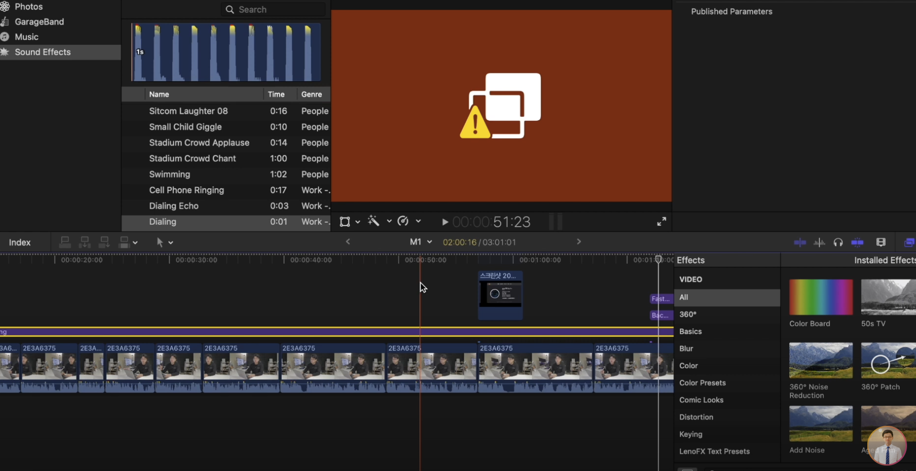 호환되지 않던 플러그인도 그대로 쓸 수 있는 모습을 볼 수 있습니다. 파이널컷을 종료했다가 다시 실행하면 원래 모드로 다시 실행되며, 다시 호환성 모드로 실행하려면 터미널 명령어를 터미널에 또 다시 입력해주어야 합니다.