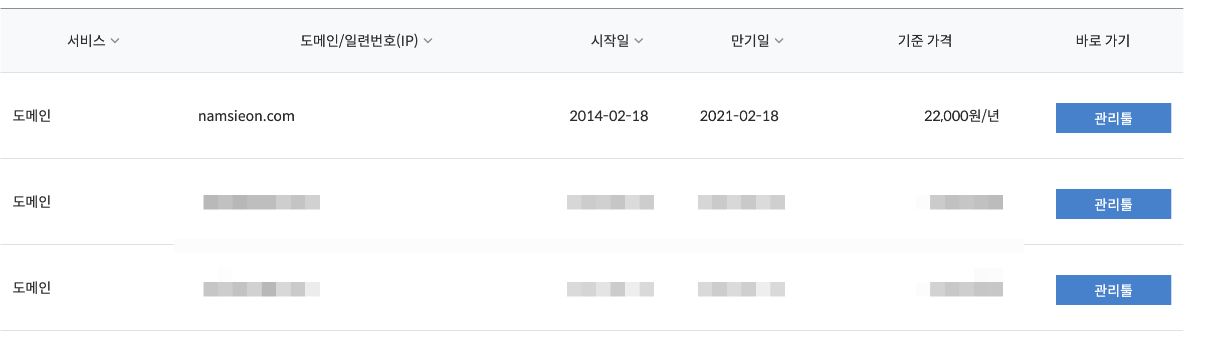 매년 1월에 반복적으로 하는 일 중 하나가 개인 도메인 갱신 작업이다. 지금 티스토리 블로그에 연결해둔 도메인 남시언닷컴(namsieon.com)은 매년 1년 단위로 결제하면서 갱신하고 있다. 한꺼번에 몇 년치를 결제하면 일부 할인을 제공하긴 하는데, 아무래도 매년 관리하는 느낌을 받고 싶어서 귀찮지만, 매년 1월에 갱신 작업을 해주고 있다.