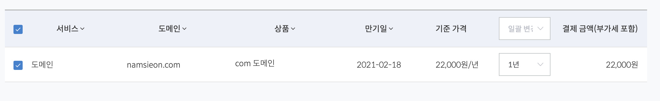 매년 1월에 반복적으로 하는 일 중 하나가 개인 도메인 갱신 작업이다. 지금 티스토리 블로그에 연결해둔 도메인 남시언닷컴(namsieon.com)은 매년 1년 단위로 결제하면서 갱신하고 있다. 한꺼번에 몇 년치를 결제하면 일부 할인을 제공하긴 하는데, 아무래도 매년 관리하는 느낌을 받고 싶어서 귀찮지만, 매년 1월에 갱신 작업을 해주고 있다.