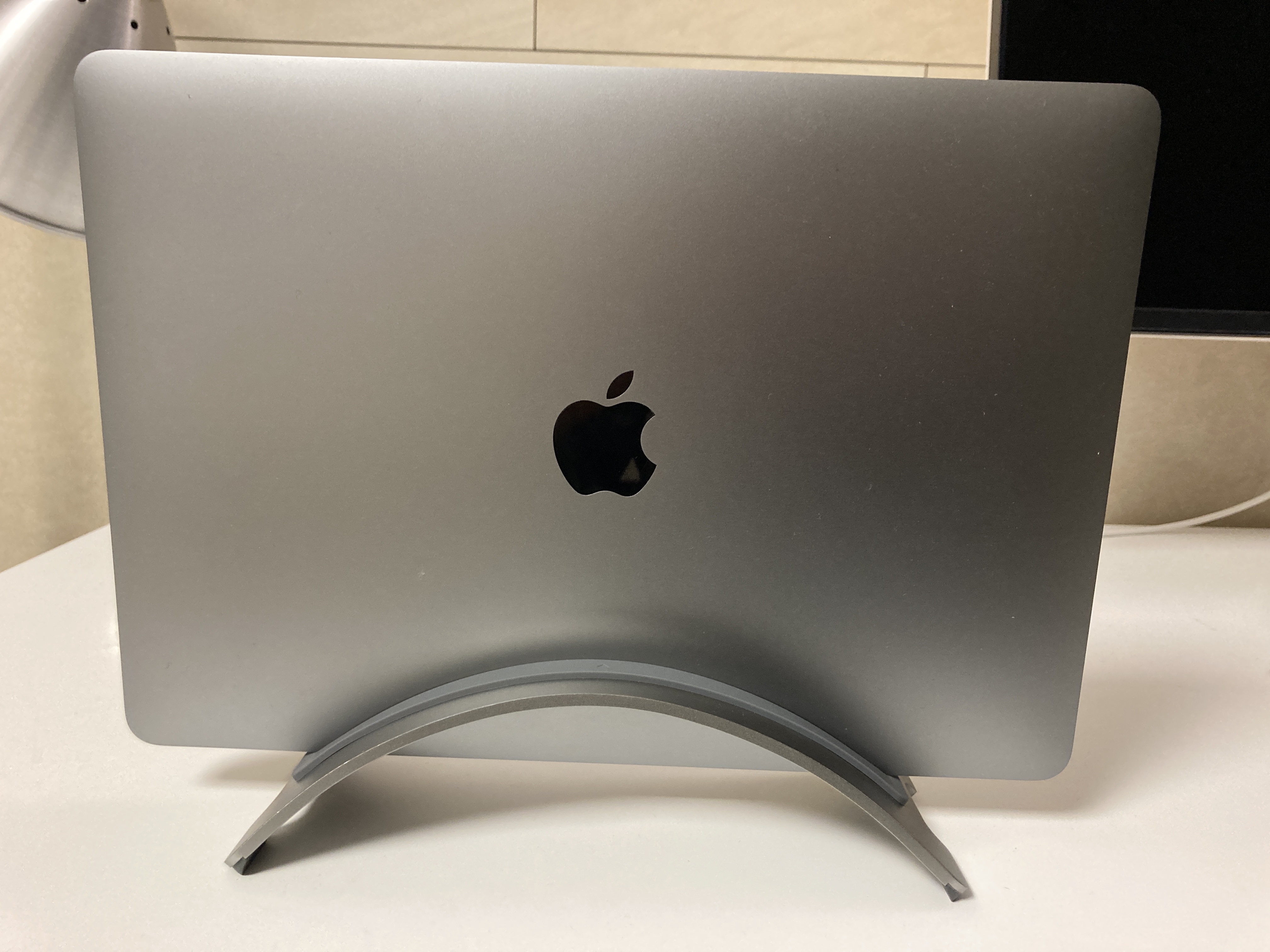 외장 모니터 옆에 깔끔하게 이렇게 세워두고 사용 중. 아래쪽이 아치형으로 볼록 위로 올라와 있으므로 이 아래쪽을 활용해서 썬더볼트 선이나 USB 선을 지나가게끔 설계해서 정리할 수도 있다. 제품 양끝 모서리가 살짝 날카로운 느낌이 있어서 예민하신분들은 주의가 필요하다. 가격이 조금 비싸지만 오래 쓸 용도로 구매한거라 만족하면서 사용 중!