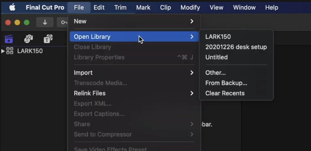 닫은 라이브러리를 다시 열고 싶다면, 파이널컷 메뉴에서 'File' - 'Open Library' - 라이브러리 이름 을 선택하여 다시 오픈할 수 있습니다.