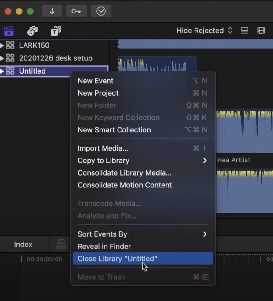 파이널컷 라이브러리 삭제하기(라이브러리 닫는 방법)