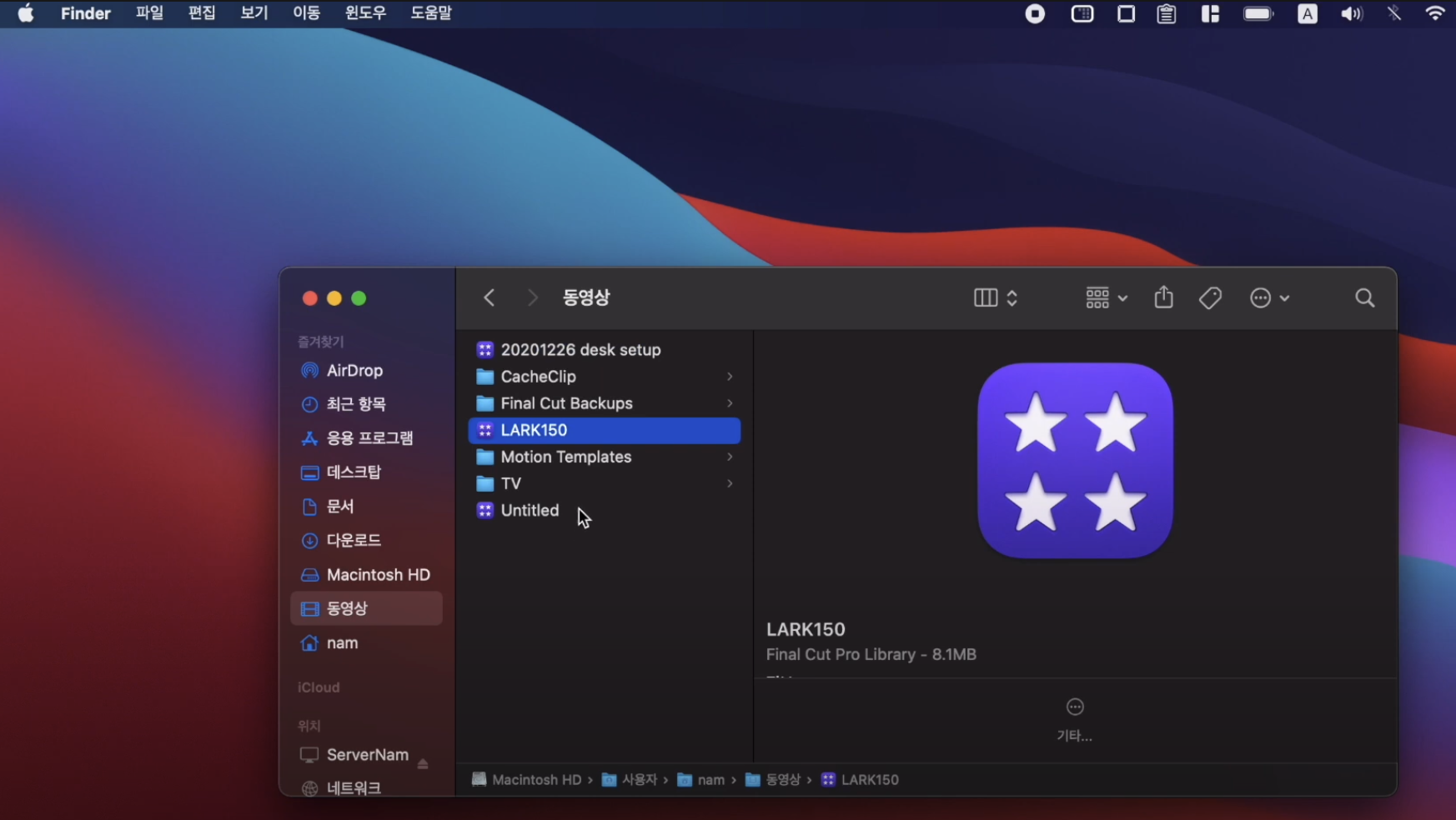 파이널컷 라이브러리의 위치는 동영상 폴더 안에 자리잡고 있습니다. 여기에서 원하는 라이브러리를 선택 후 파인더에서 그냥 삭제하면 됩니다.