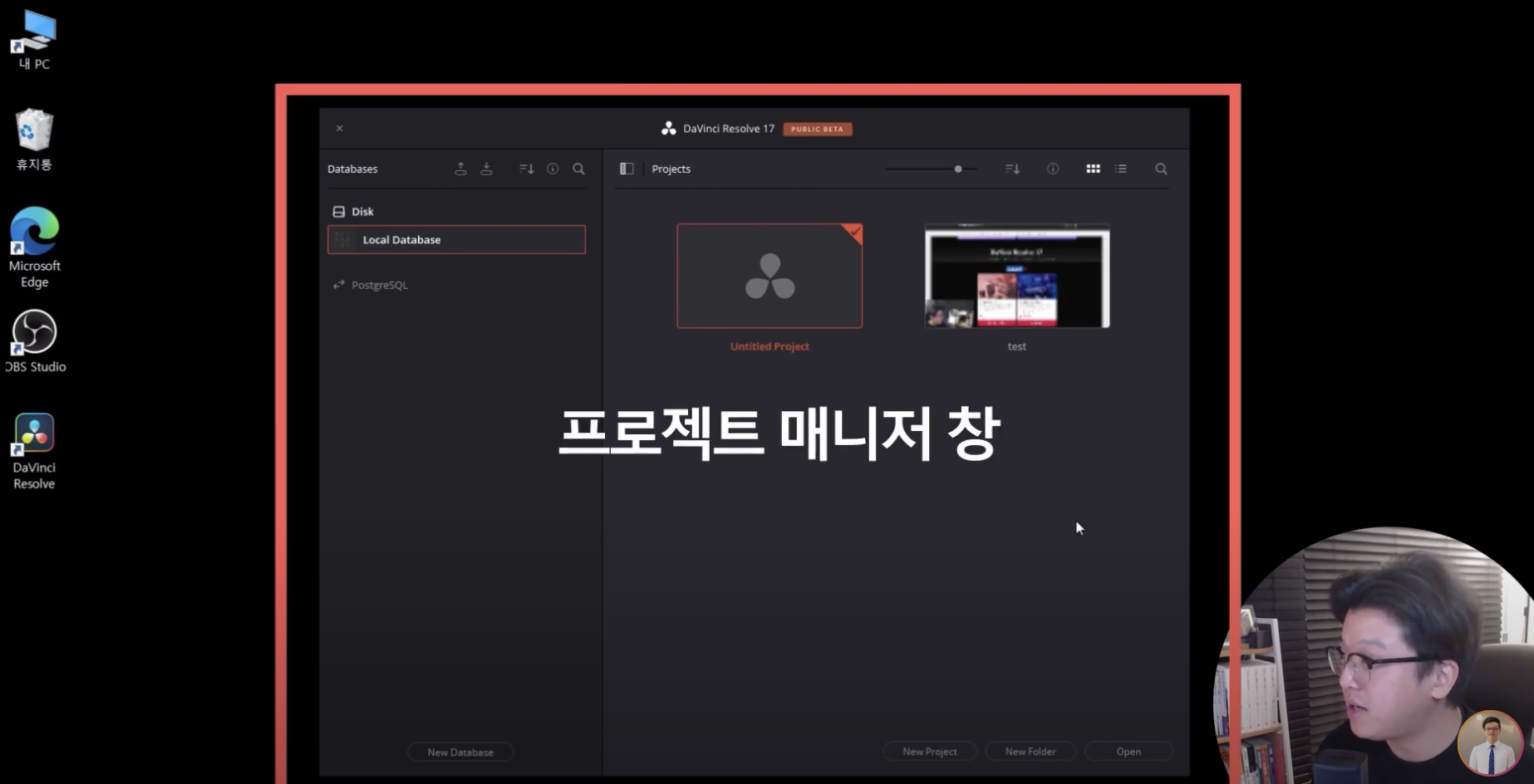 오늘은 다빈치 리졸브 17 버전의 인터페이스를 알아보겠습니다. 우리가 프로그램을 잘 활용하려면 인터페이스를 잘 알아야합니다. 제일 먼저 실행하면 프로젝트 매니저 창이 나옵니다. 프로젝트를 선택하는 곳인데 이 곳에서부터 다빈치 리졸브 17 버전이 시작됩니다.
