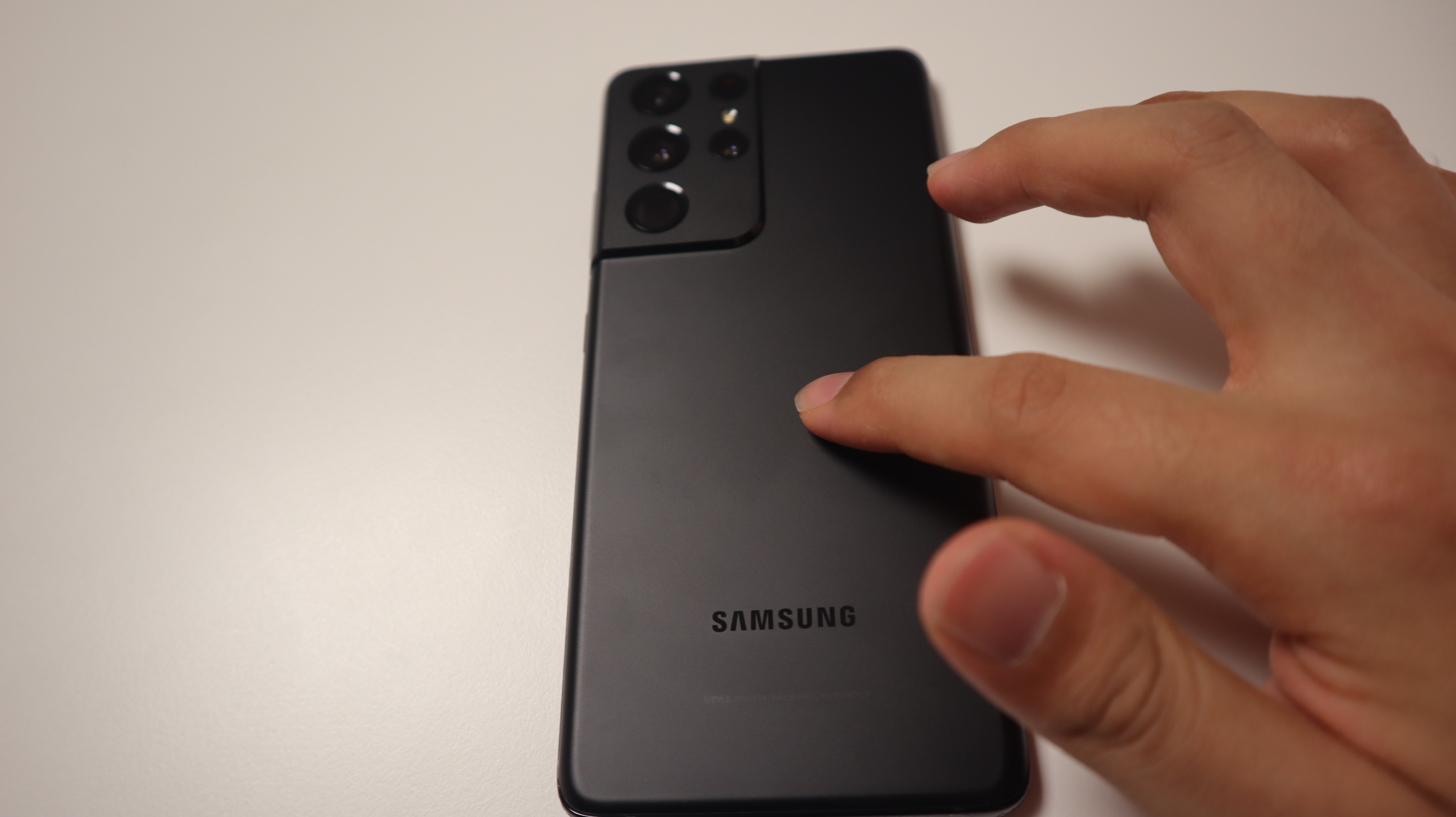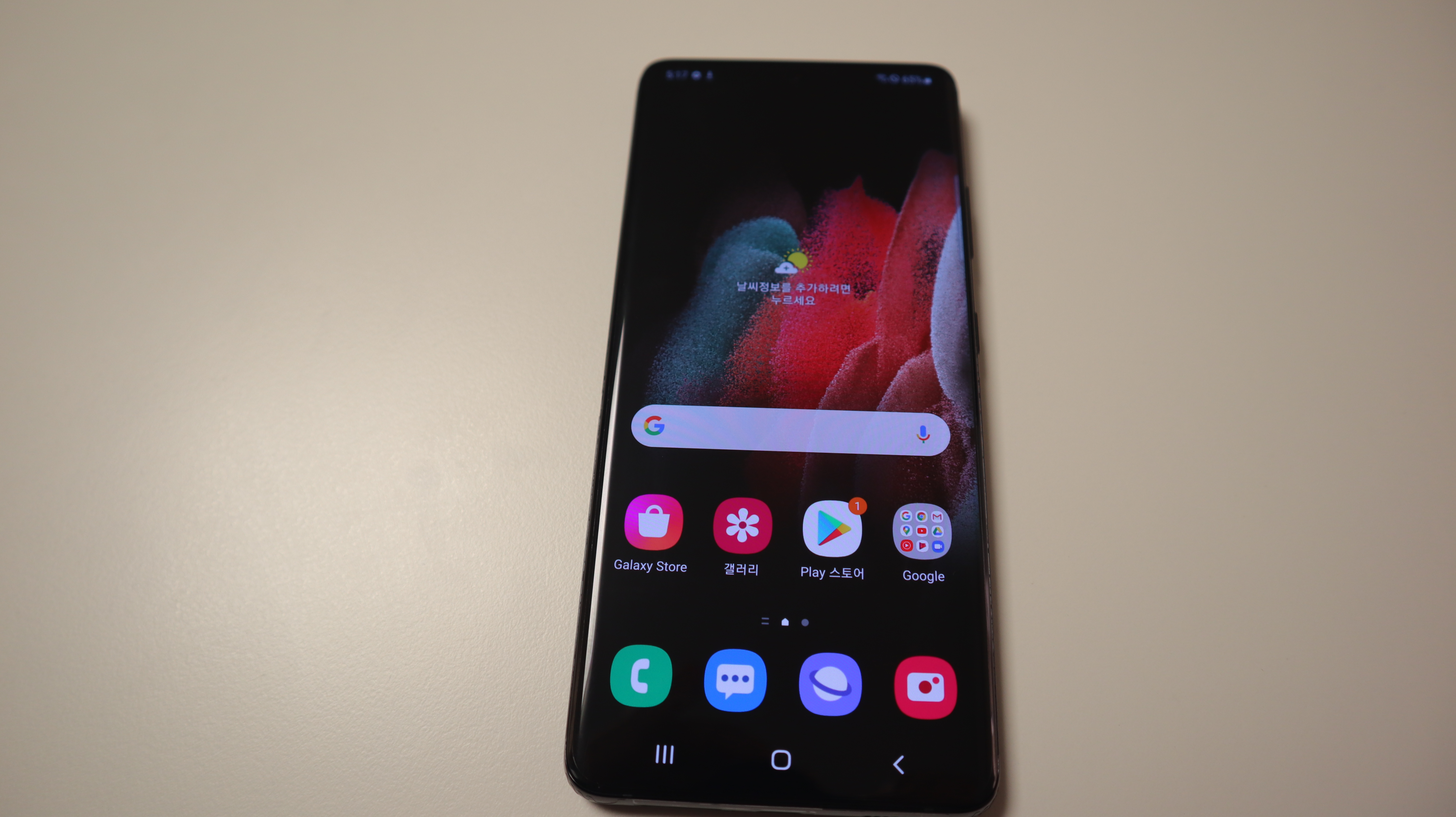 늠름한 크기의 갤럭시 S21 울트라의 모습. 예전에 아이폰7플러스 모델을 쓸 때의 크기와 비슷하고 무게도 그때와 거의 비슷한 것 같다. 케이스가 없을 땐 조금 날씬한? 느낌도 난다.