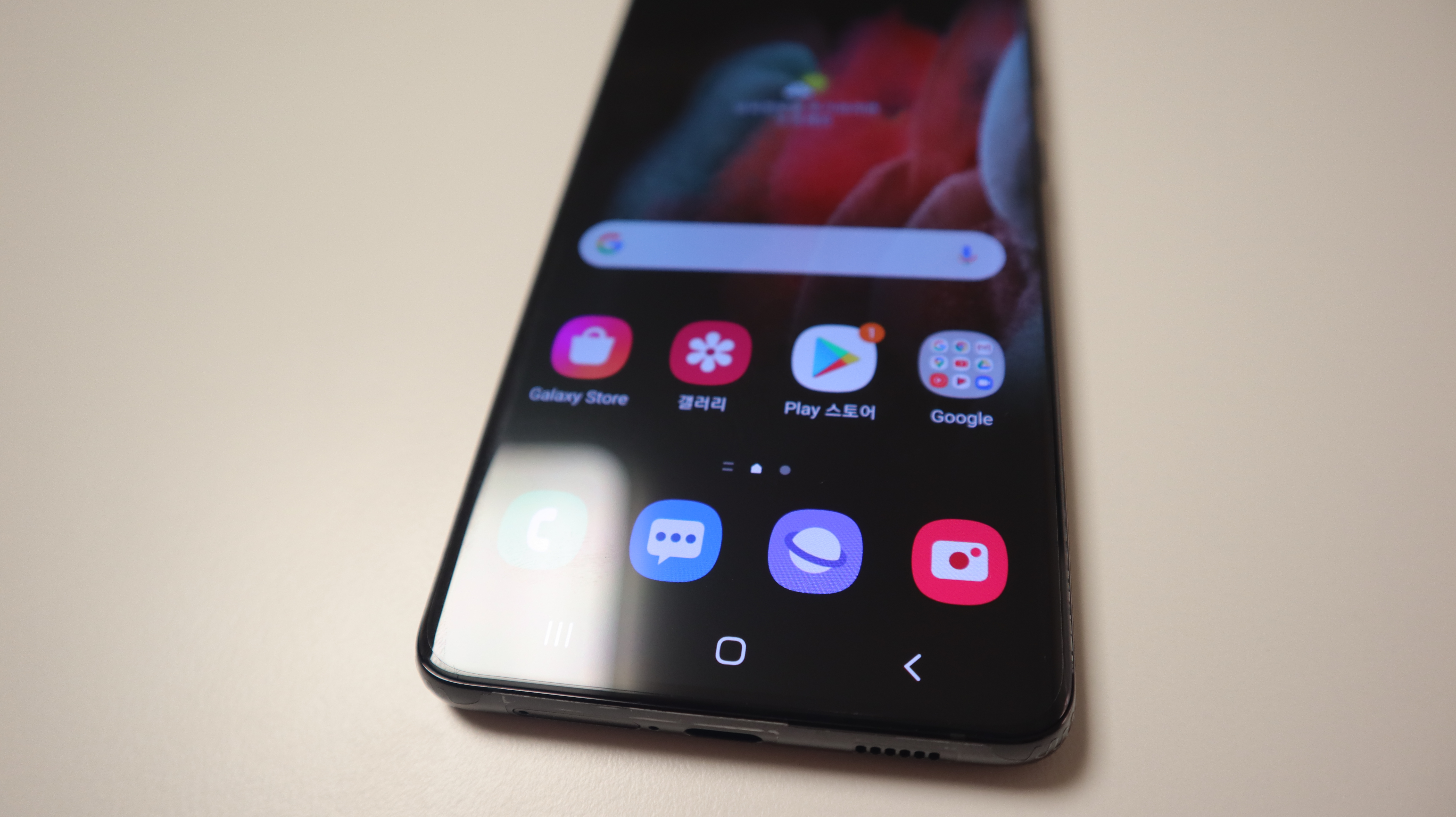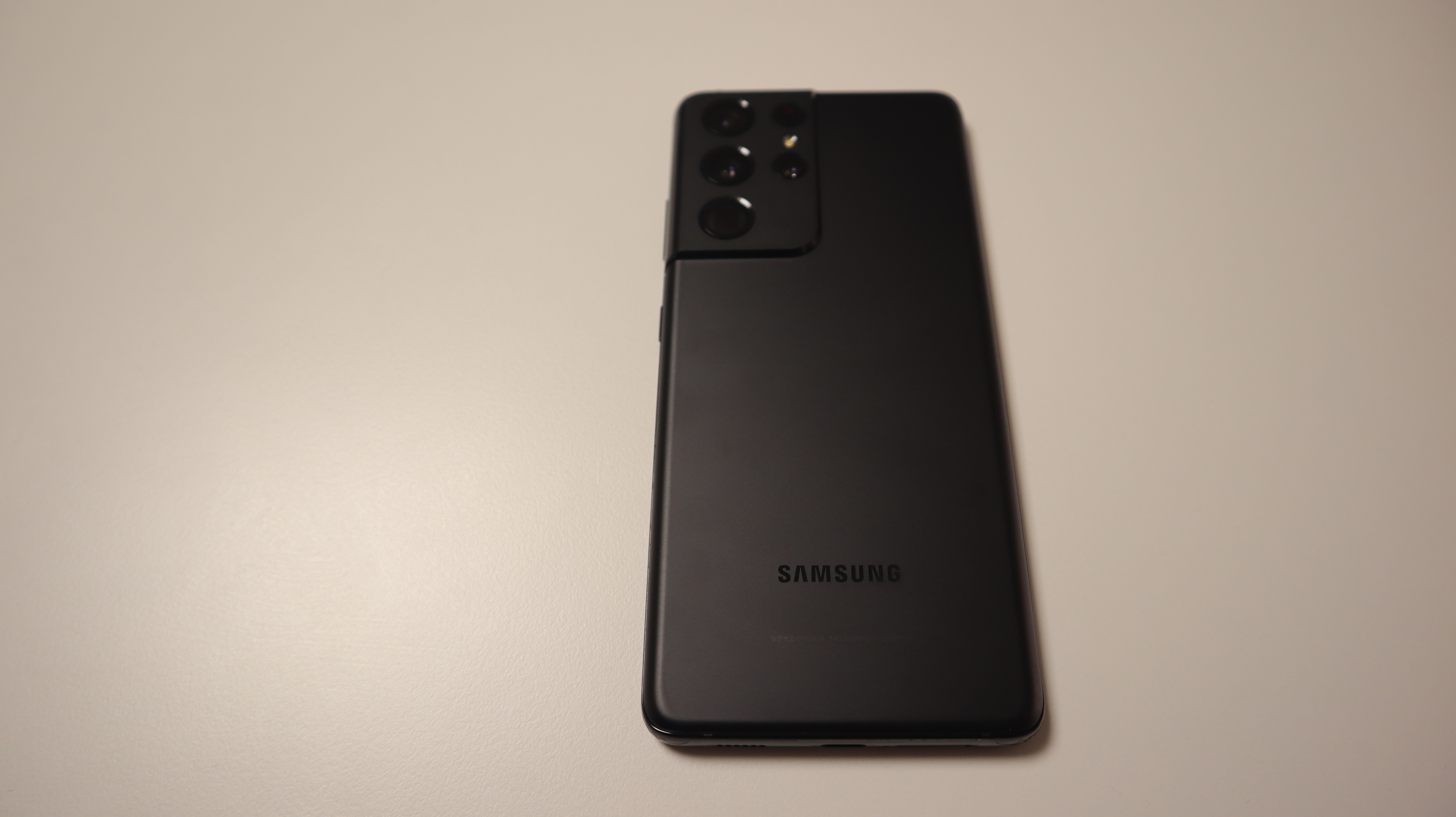 늠름한 크기의 갤럭시 S21 울트라의 모습. 예전에 아이폰7플러스 모델을 쓸 때의 크기와 비슷하고 무게도 그때와 거의 비슷한 것 같다. 케이스가 없을 땐 조금 날씬한? 느낌도 난다.
