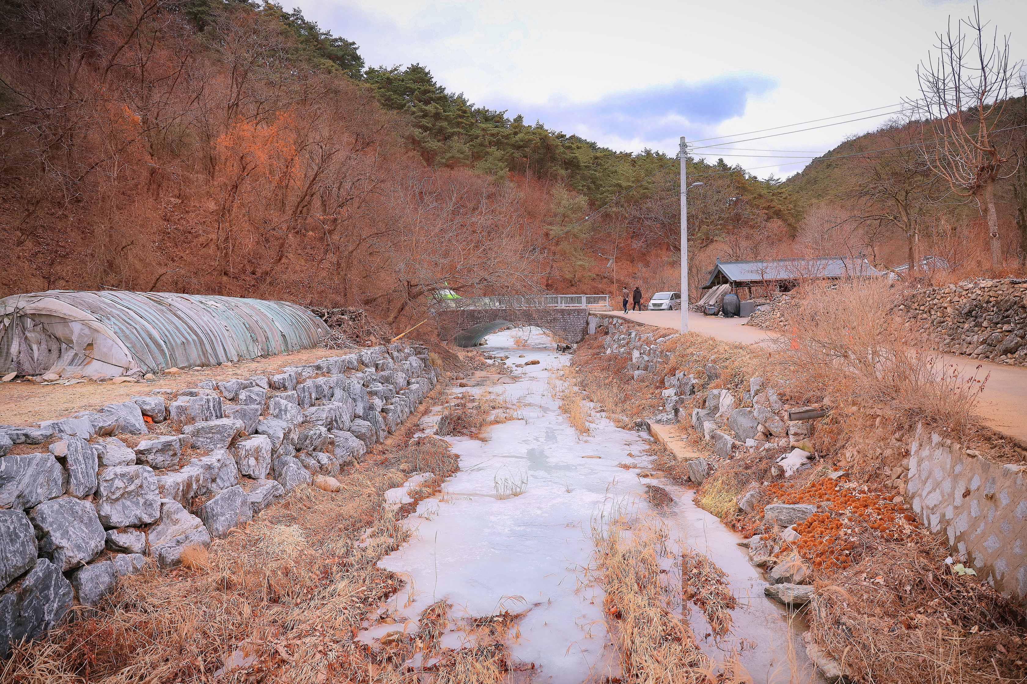 날씨가 꽤 추웠던 시기라 만휴정으로 올라가는 길에 있는 얉은 물길이 꽝꽝 얼었습니다.
