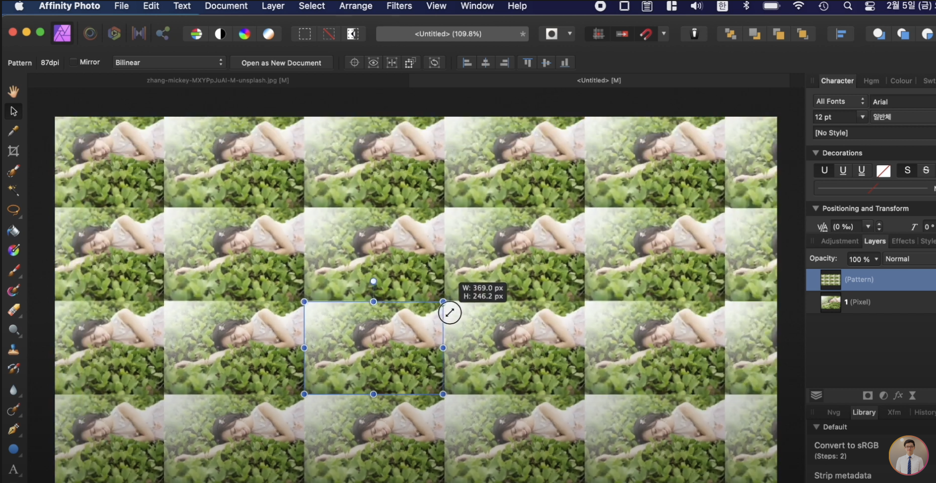 어피니티포토에서는 굉장히 손쉽게 패턴 레이어를 만들 수 있습니다. 패턴으로 만들 이미지를 추가하고