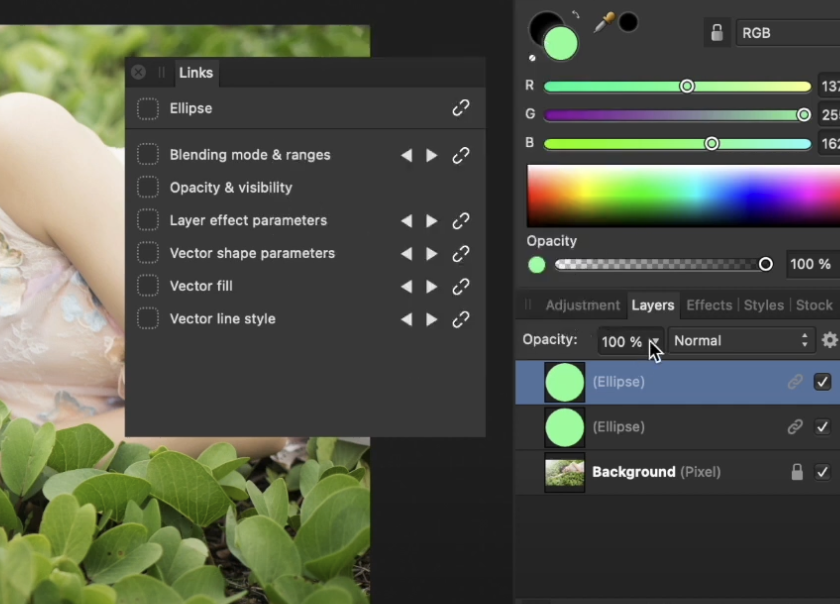 이렇게 링크된 레이어는 어떤 효과를 적용했을 때 같이 적용되며 같이 따라 움직입니다. 별개로 움직일 수도 있습니다.