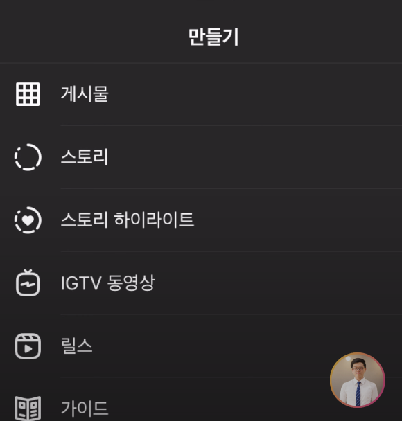 인스타그램에서 +버튼을 눌러 게시물을 추가합니다.