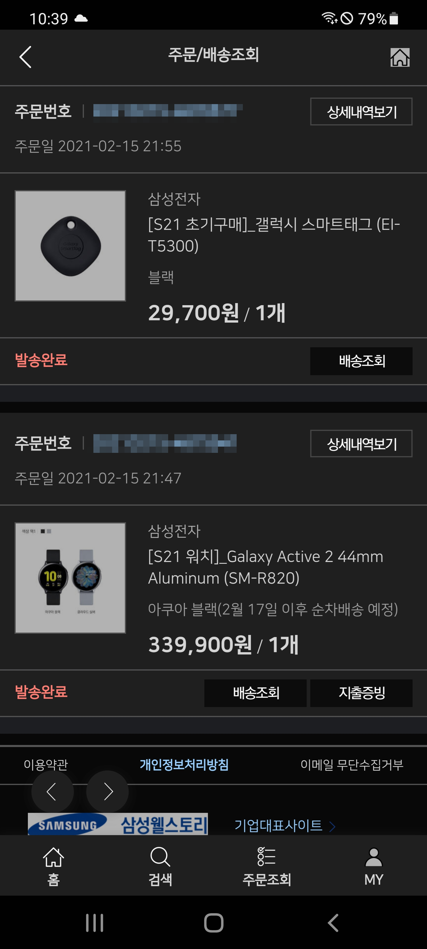 삼성 모바일 이벤트몰 상품준비중에서 발송완료로 바뀜