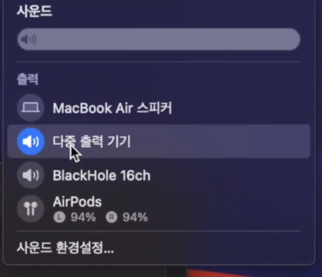 사운드를 다시 다중출력기기로 바꿔줍니다. 이제 퀵타임 플레이어로 맥북 화면 녹화를 진행하면 됩니다!