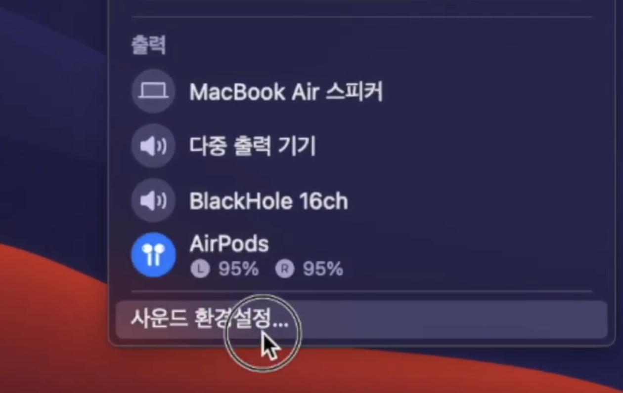 오늘은 맥북 화면을 녹화할 때 에어팟이나 이어폰을 연결해둔 상태에서 소리를 들으면서 화면 녹화를 하고, 녹화한 화면에서 맥북에서 나오는 소리까지 같이 녹음되는 설정법을 알아봅니다. (블랙홀이 설치되어 있어야 합니다)