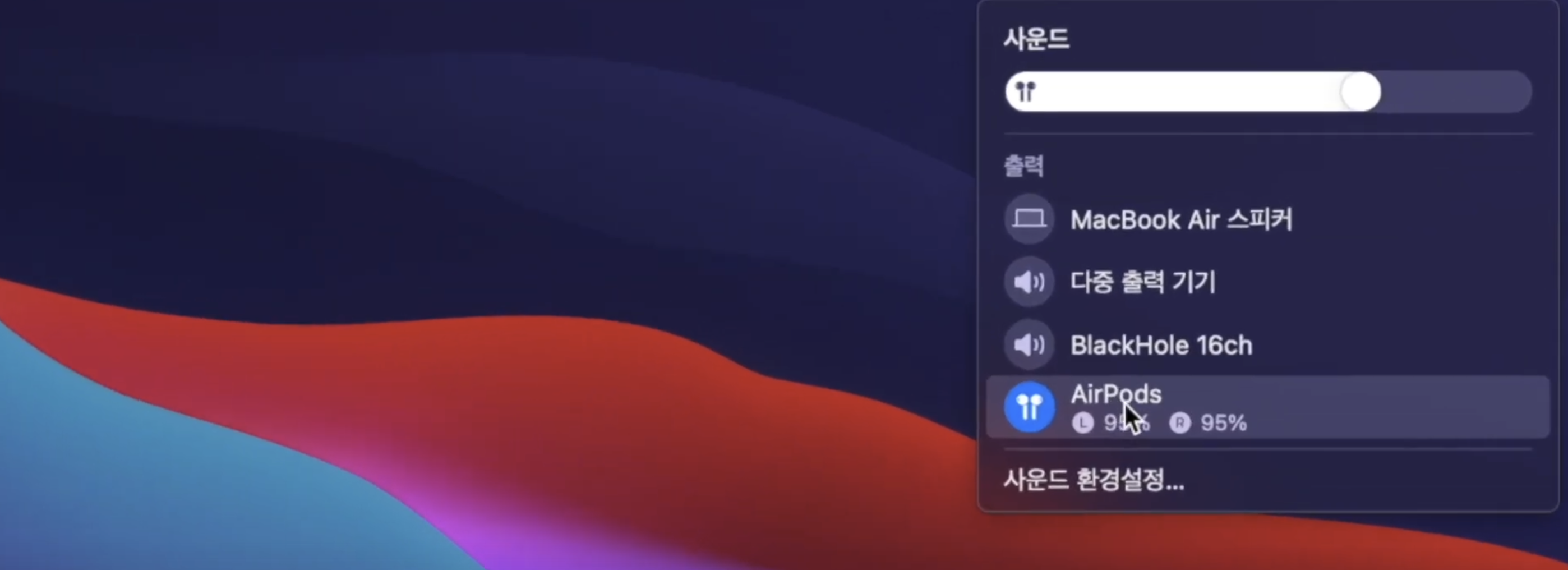 먼저 맥북과 에어팟을 블루투스로 연결합니다.