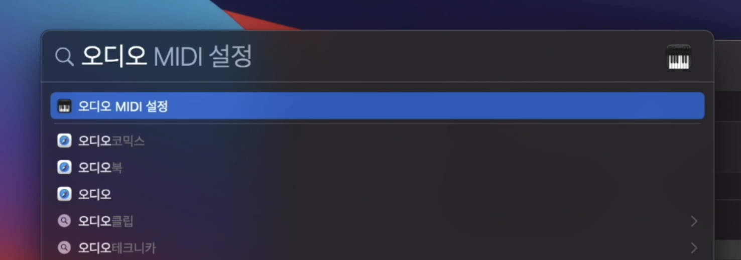 스팟라이트에서 오디오 MIDI 설정으로 들어갑니다.