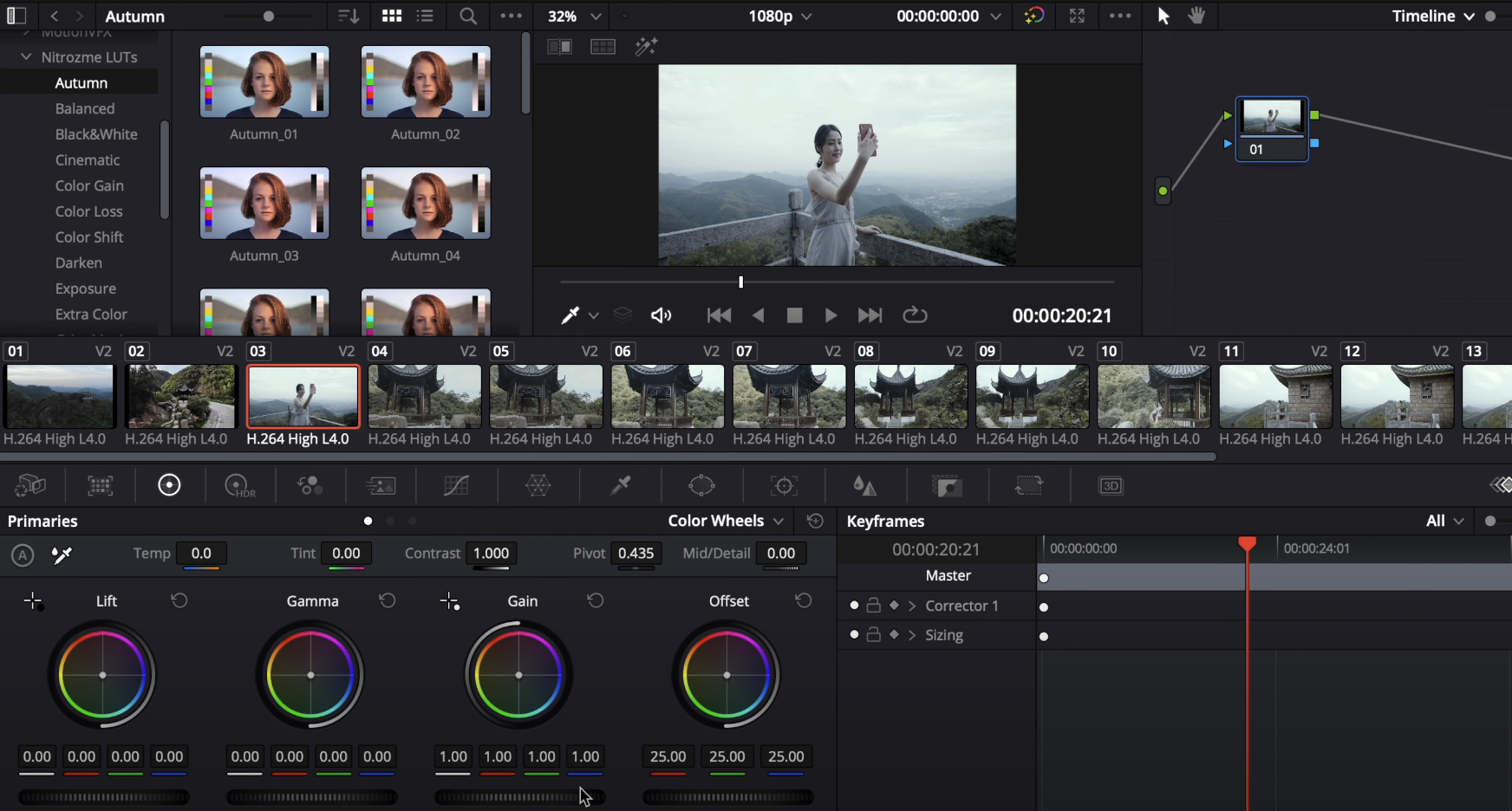 이제 다빈치 리졸브 컬러페이지에서 원하는 색보정 작업을 해줍니다.