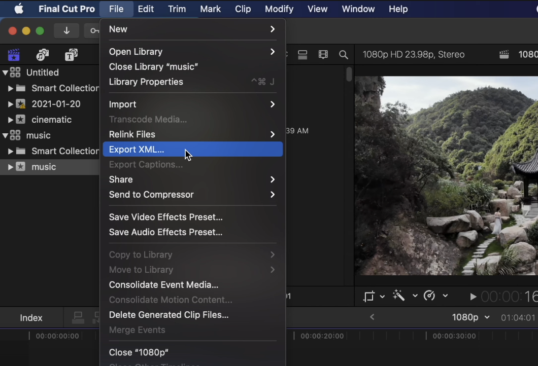 저장된 XML 파일의 확장자는 fcpxml 입니다.