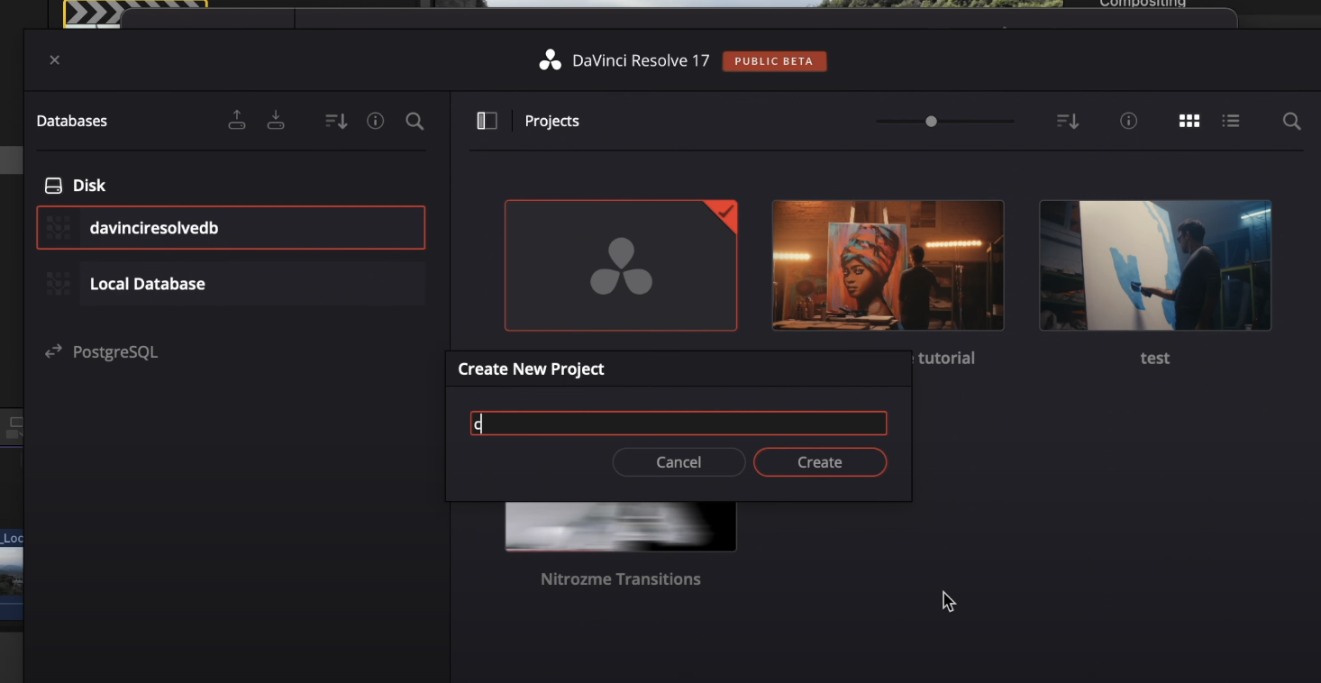 이제 다빈치리졸브로 넘어가서 새로운 프로젝트를 생성하고