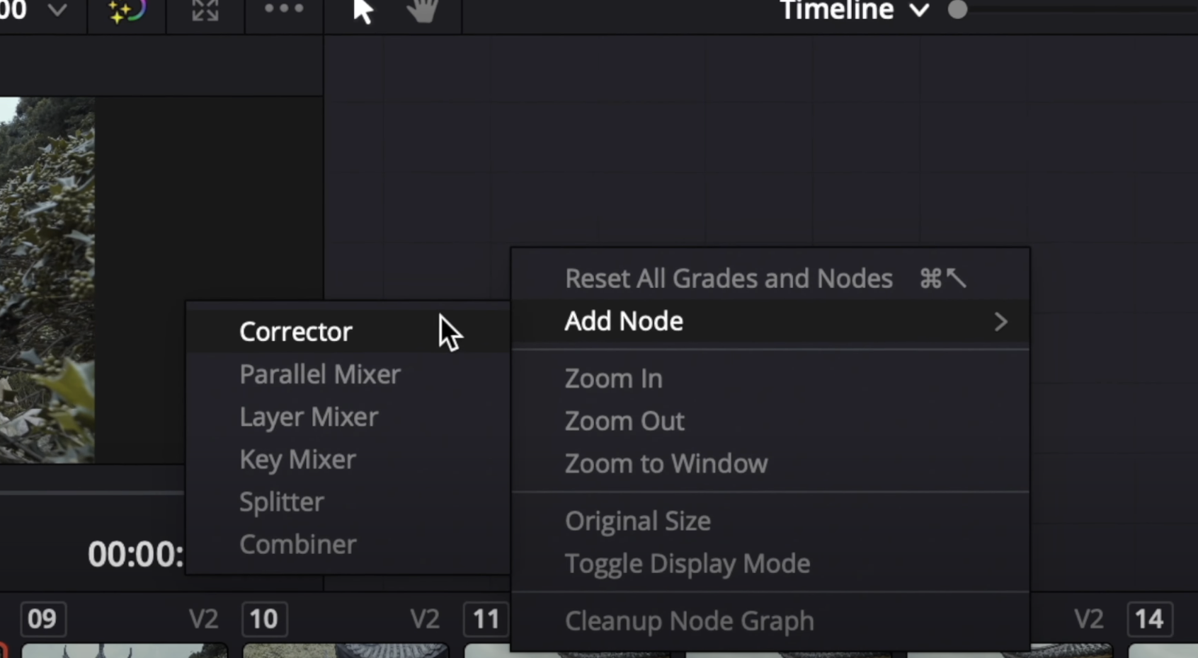 색보정을 위해 컬러페이지로 이동한 다음 우측 상단에 있는 버튼을 눌러 Clip 을 Timeline으로 바꿔줍니다.