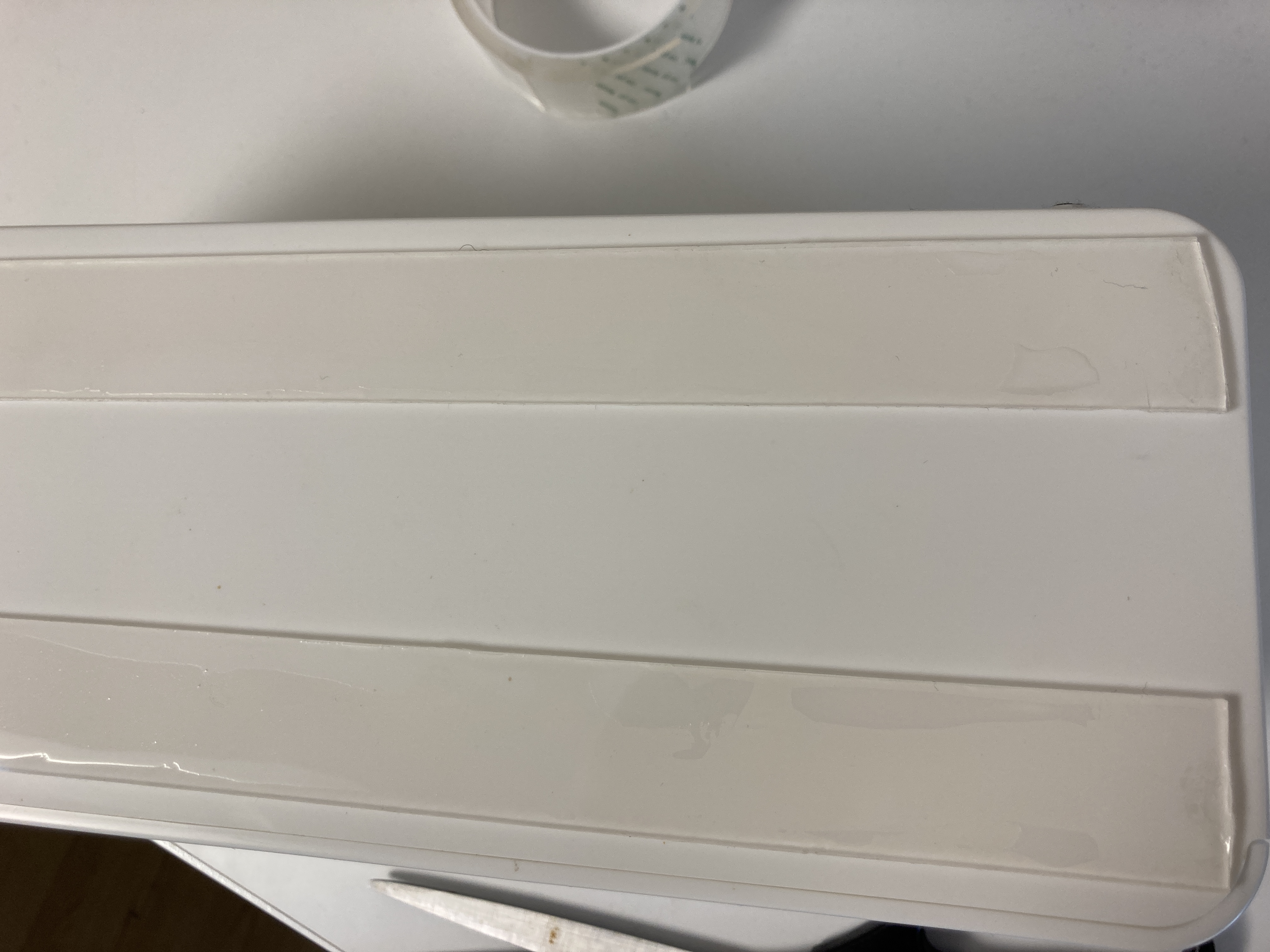 멀티탭 함과 몬스터겔 젤 테이프를 꺼내서 일단 두 줄로 붙여주었다. 한줄보다는 두 줄이 좀 더 튼튼하게 잘 고정될 것 같았다.