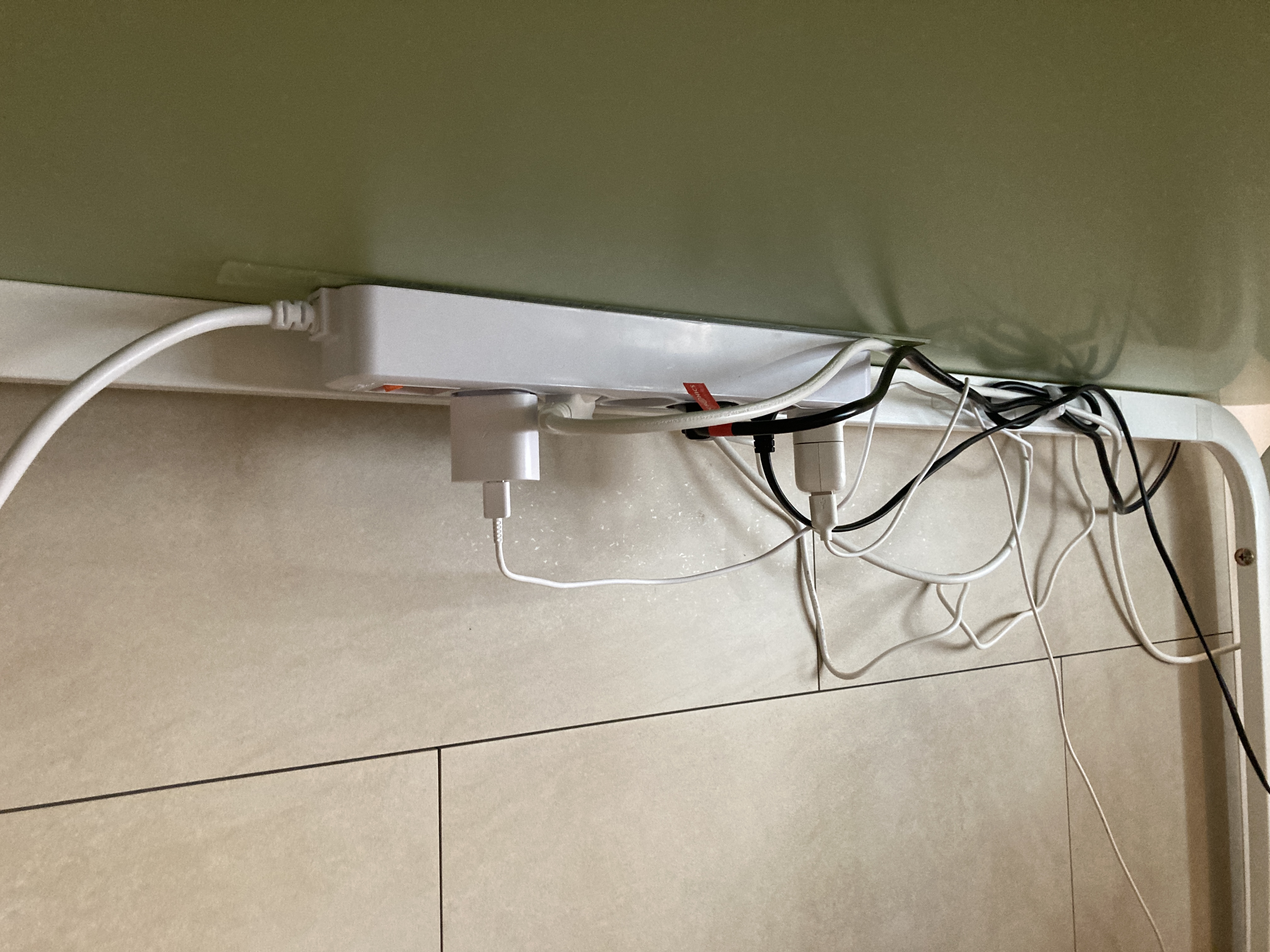 삐져나온 나머지 잡선들도 찍찍이 케이블 타이와 몬스터겔 젤 테이프를 이용해 책상 천장에 붙여주었다. 이렇게 하면 깔끔하게 유지할 수 있을 뿐만 아니라 멀티탭에 가해지는 중력 무게도 조금 덜어줄 수 있을 것 같았다.