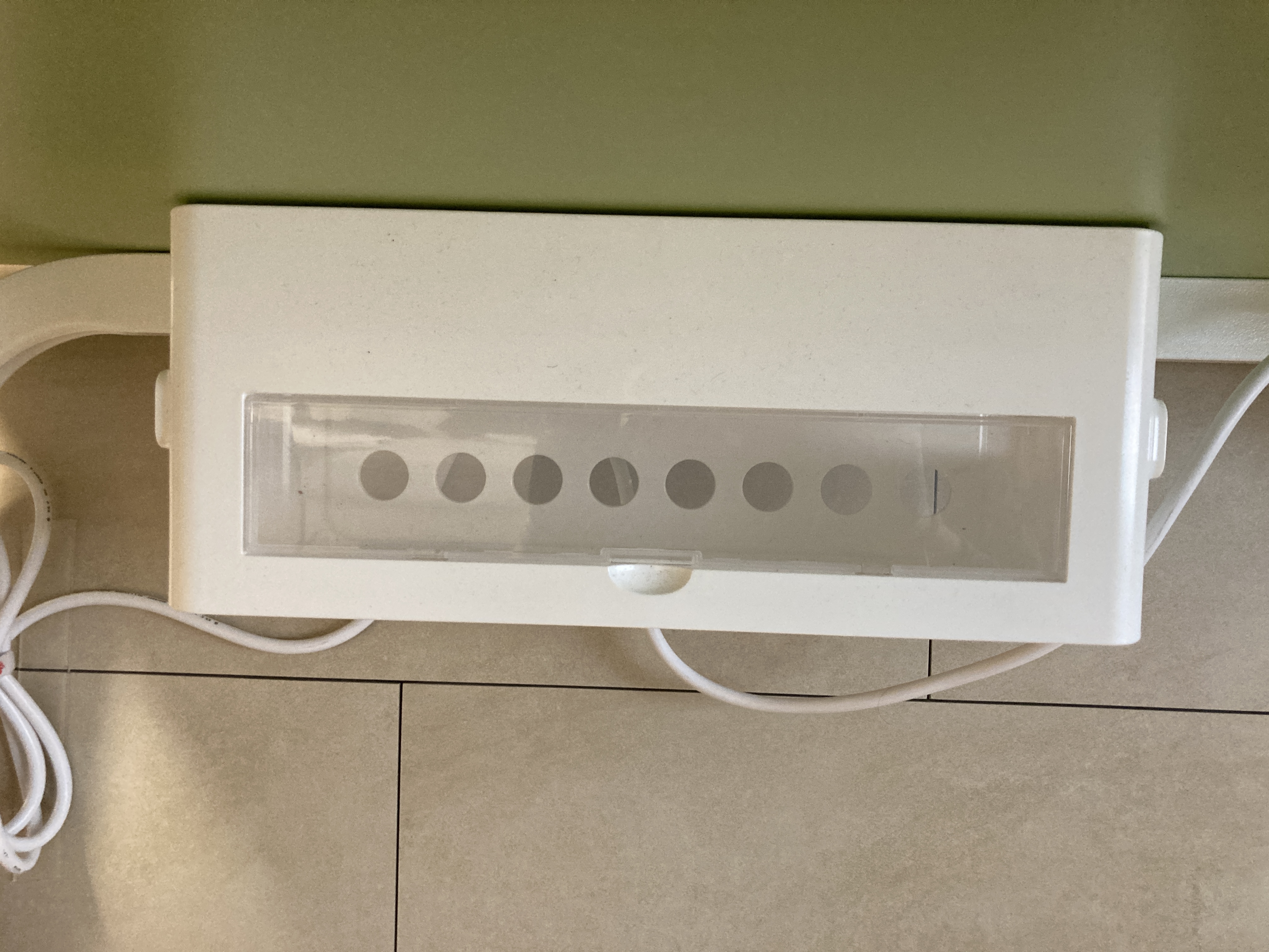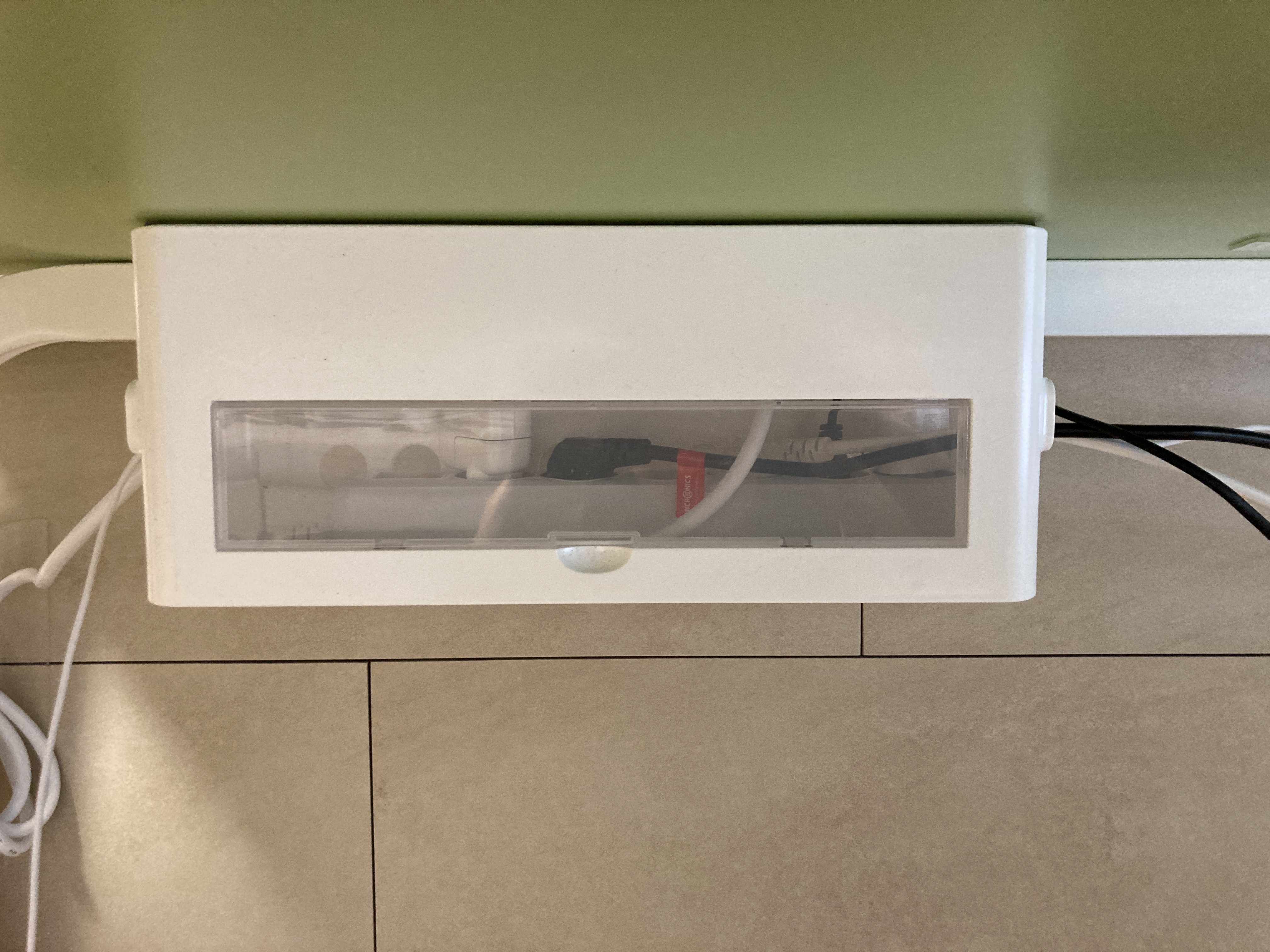 이번에는 처음부터 바로 설치하지 않고 일단 멀티탭 보관함을 먼저 책상 밑에 붙여두고 고정되기를 조금 기다려주었다.