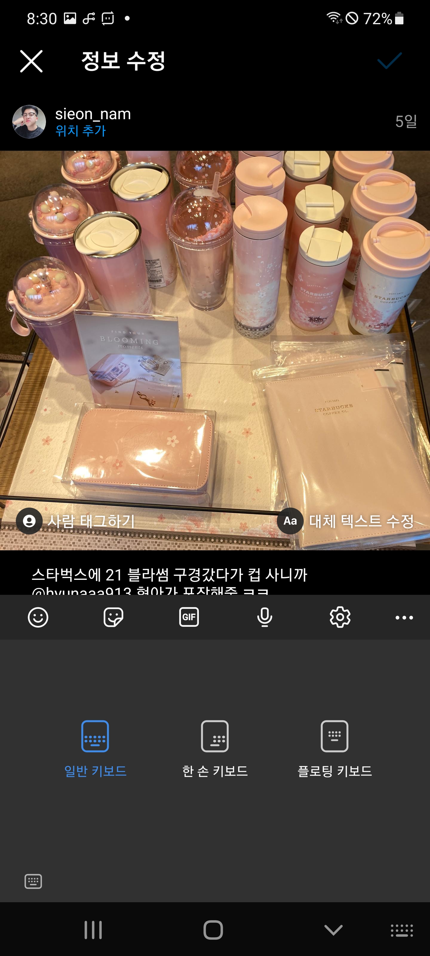 인스타그램 글 수정시 키보드 안내려가는 문제 플로팅 키보드로 해결