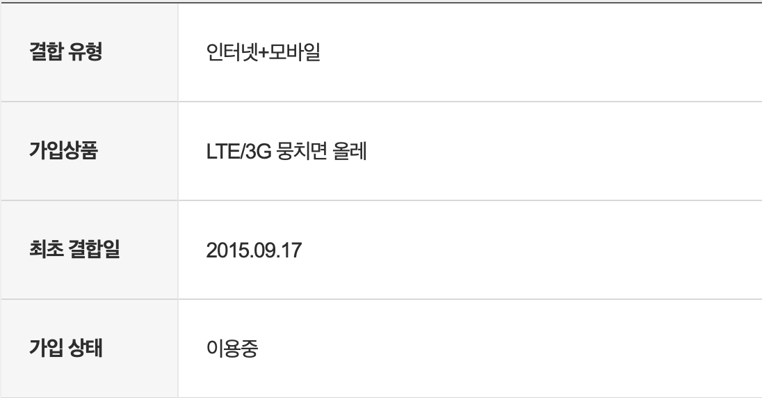 KT의 결합상품인 프리미엄 싱글 결합의 경우 안내 페이지에서는 나도 신청 가능할걸로 생각했지만, KT플라자에서 물어본 결과 인터넷 회선이 하나이고, 모바일 회선이 하나 뿐이라서 신청 불가하다는 답변을 받아 아쉽게도 신청할 수 없었다. 만약 신청 가능할 경우 좀 더 저렴하게 인터넷과 모바일 이용이 가능하다.