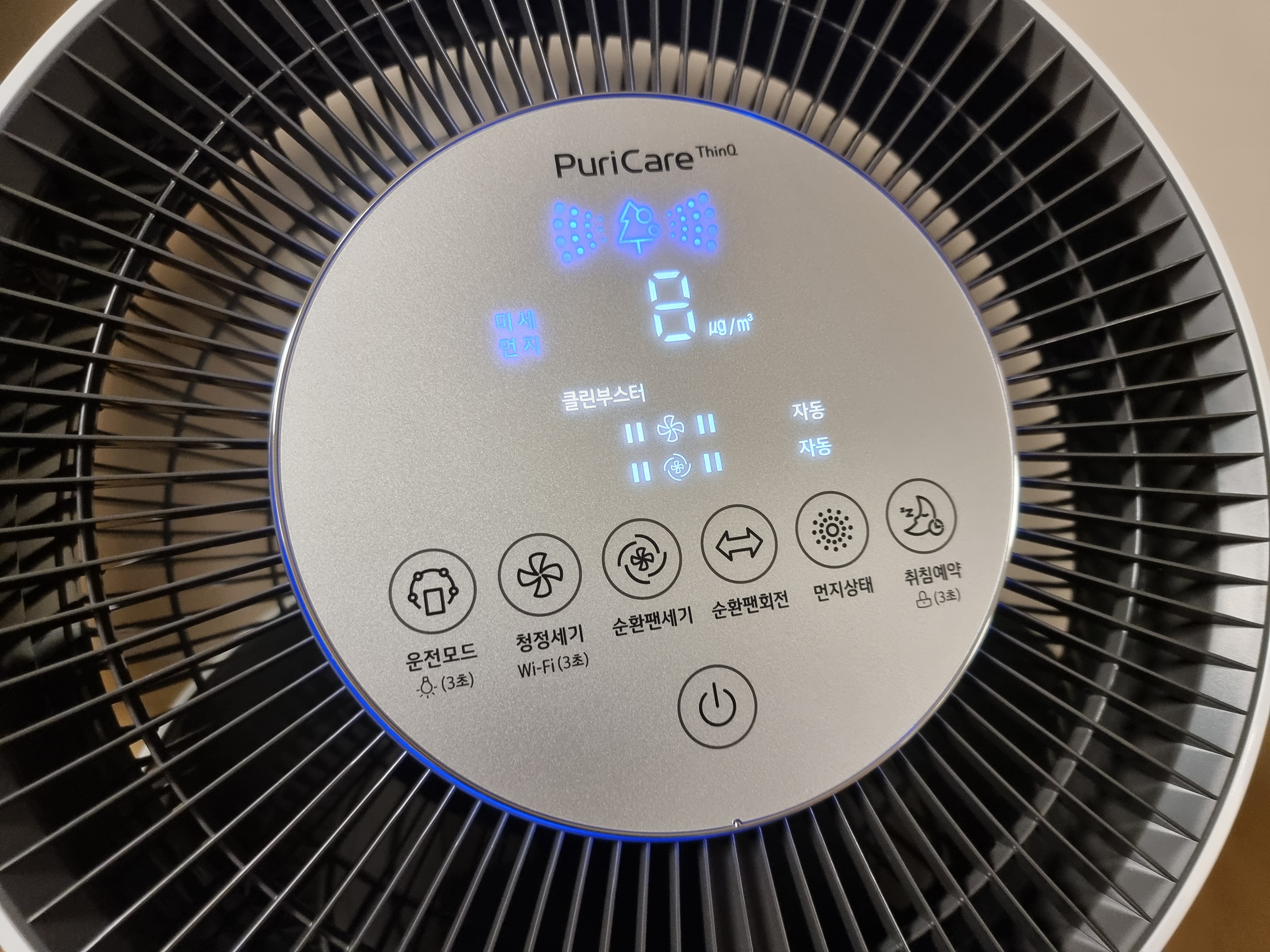 이제 전기를 연결하고 공기청정기를 켜준다. LG전자 제품 답게 제품이 켜지고 꺼지는 소리는 LG전자 퓨리케어 가습기 소리와 똑같다. 조금 다른 소리가 났다면 더 좋았을듯...