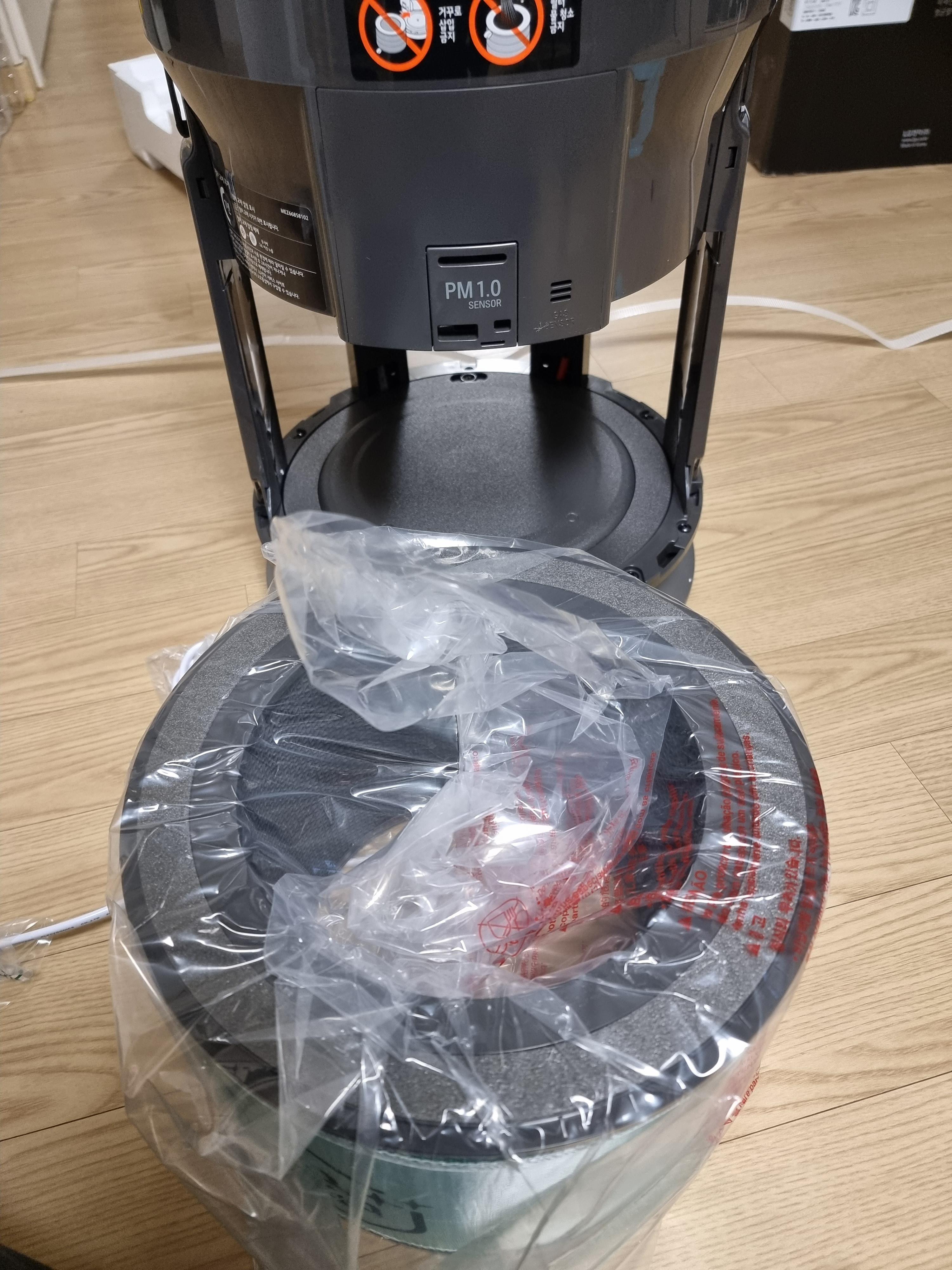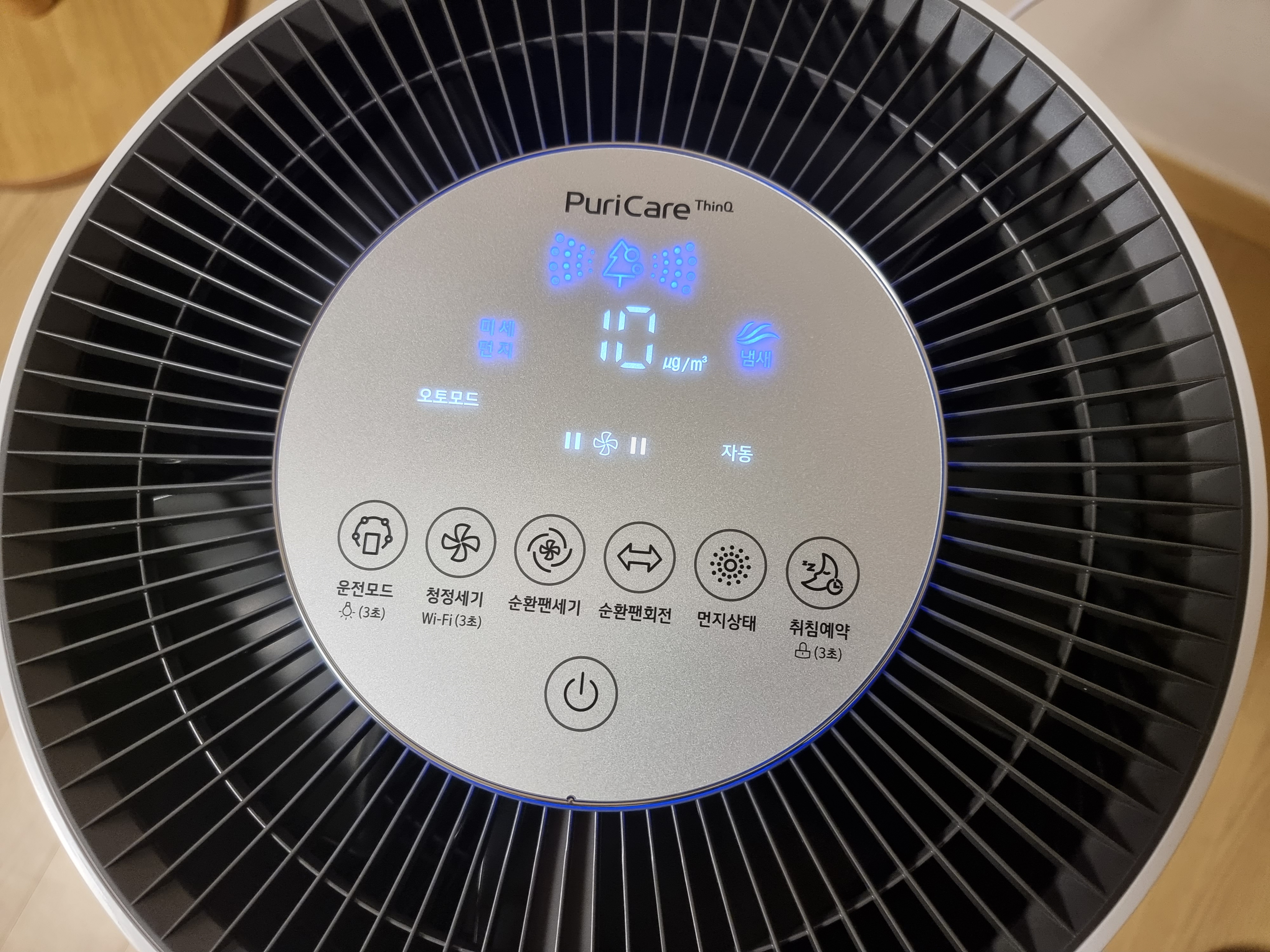 이제 전기를 연결하고 공기청정기를 켜준다. LG전자 제품 답게 제품이 켜지고 꺼지는 소리는 LG전자 퓨리케어 가습기 소리와 똑같다. 조금 다른 소리가 났다면 더 좋았을듯...