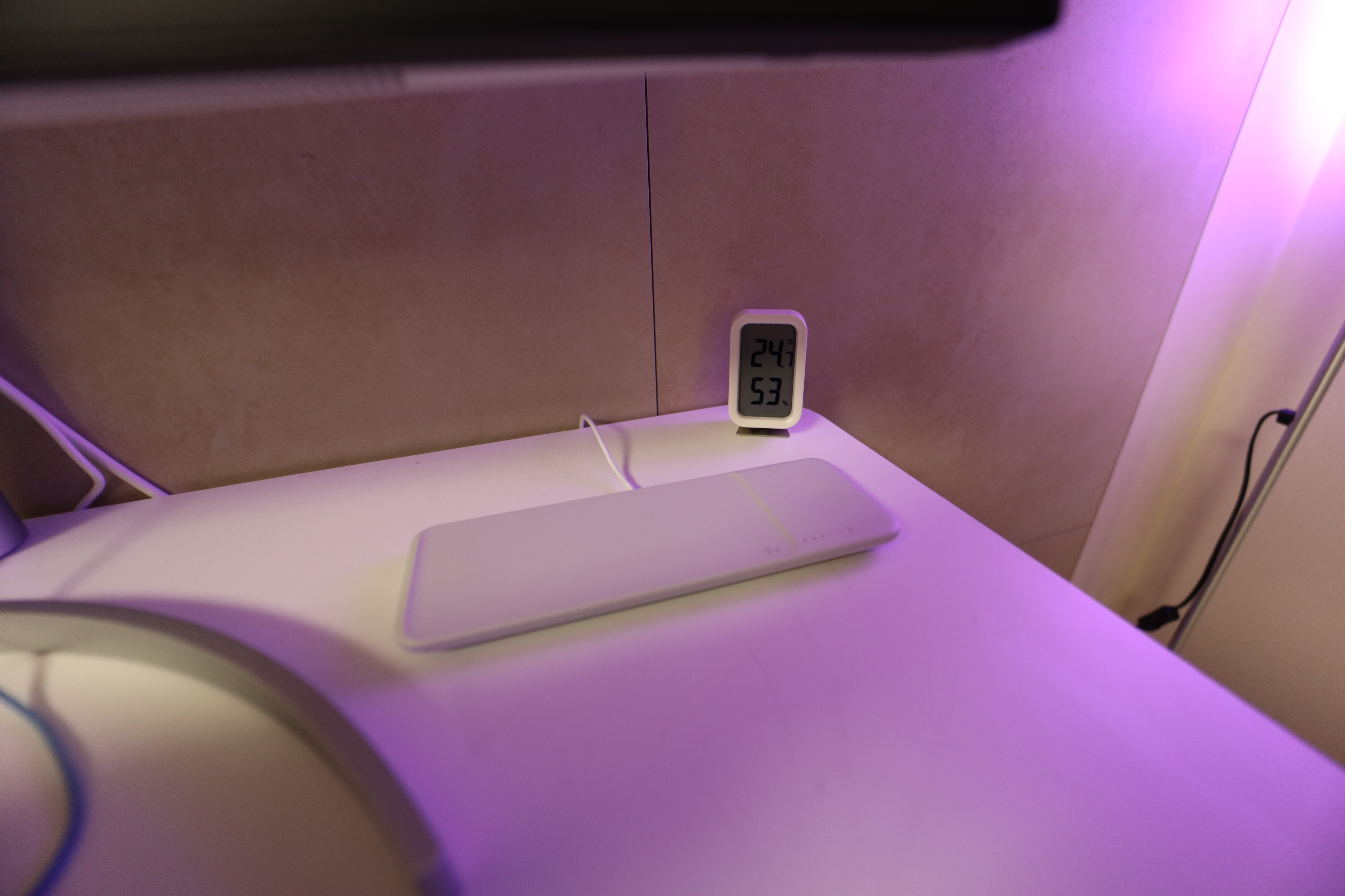 오른쪽에는 온습도계와 삼성 무선충전 트리오를 배치해서 언제든지 충전할 수 있도록 배치해둔다.