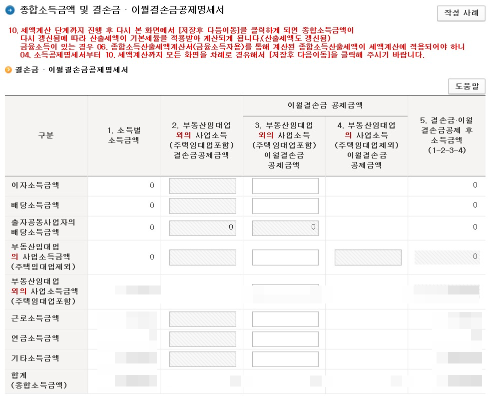 여기까지 입력한 후 넘어오면, 세액공제신청서 탭이 나오면서 종합소득금액와 산출세액이 계산된다.