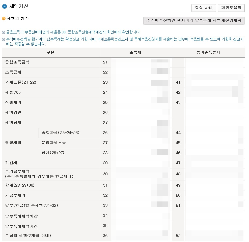 이렇게 저렇게 해보면서 필요한 부분들을 모두 입력한 후 마지막 단계까지 가면 결정세액을 볼 수 있고, 해당 세액 금액이 납부해야할 금액이다. 만약 여러가지 이유로 세액이 마이너스로 나올 경우 환급금이 있다는 뜻이므로 마지막 단계에 계좌정보를 입력해준뒤 신고 절차를 마무리하면 된다.