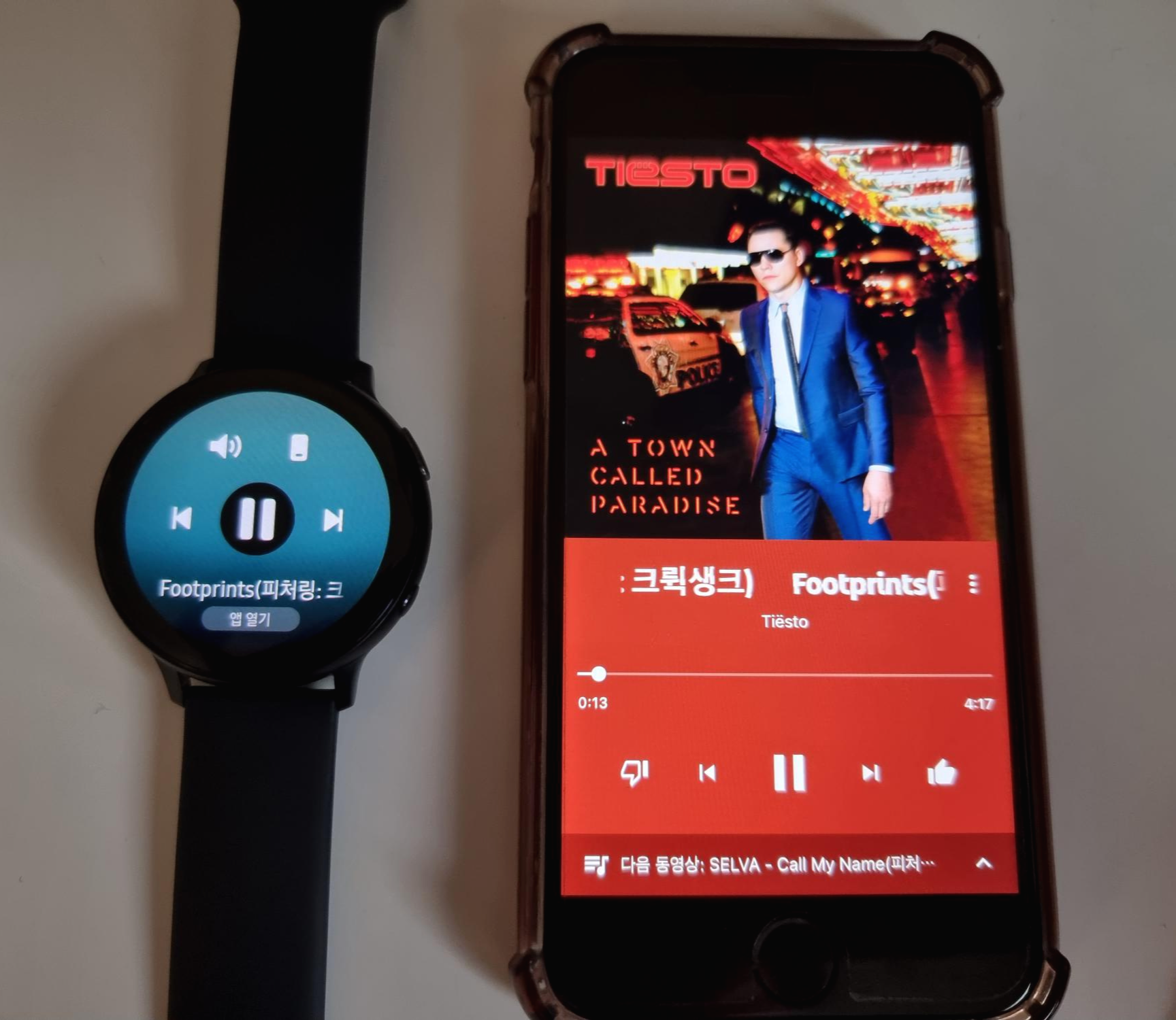 그런데 얼마전부터 아이폰에서 유튜브 뮤직으로 음악을 들을 때 듣는건 가능한데, 갤럭시 워치 액티브2에서는 음악이 연동되지 않아서 시계에서 컨트롤이 안되는 문제가 발생했다. 잘 되다가 갑자기 안되어서 좀 당황스러웠다.
