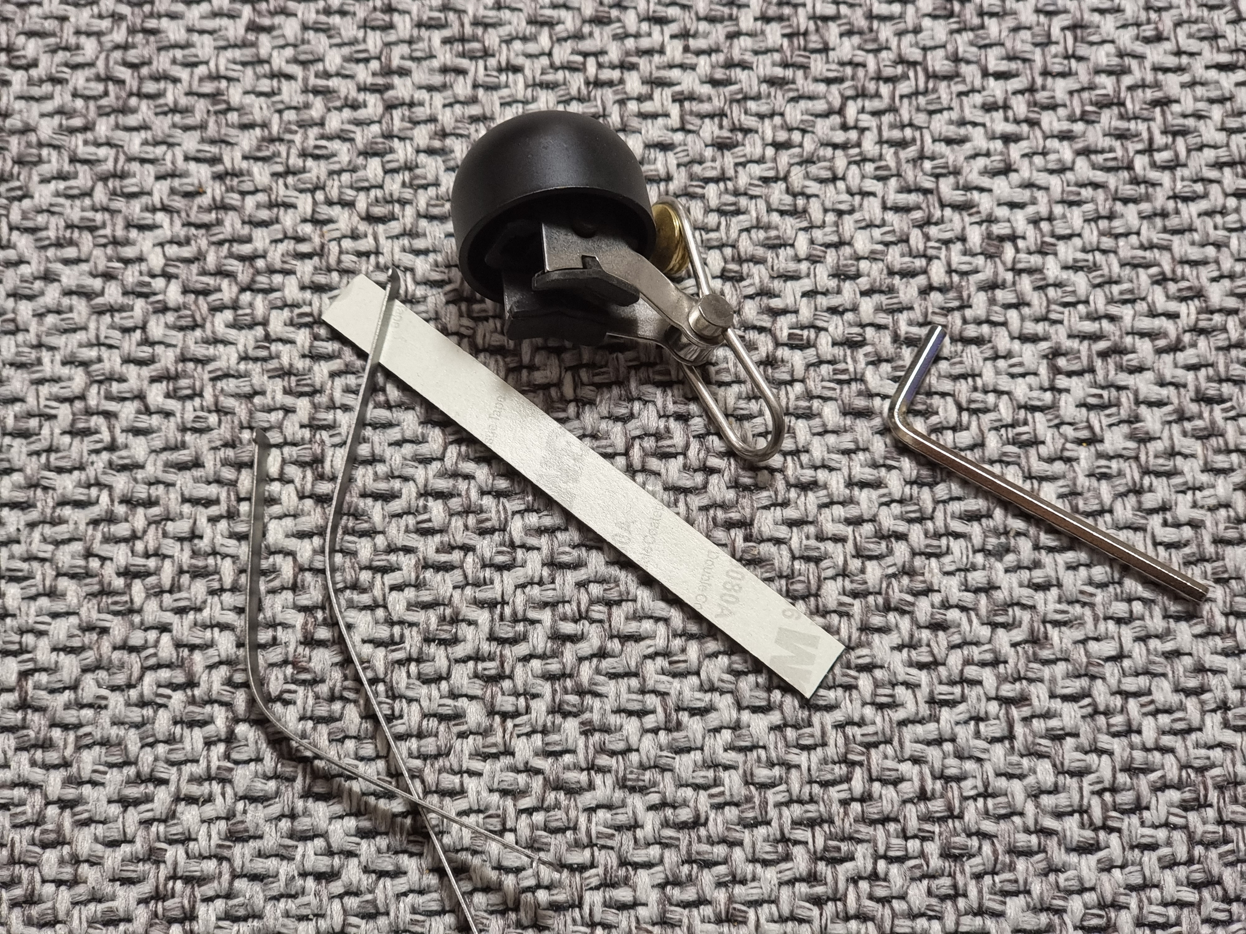 자전거 벨을 원하는 곳에 배치하고 뒤에 묶기용 틀을 넣은 후 렌치로 조여주면 끝이다.