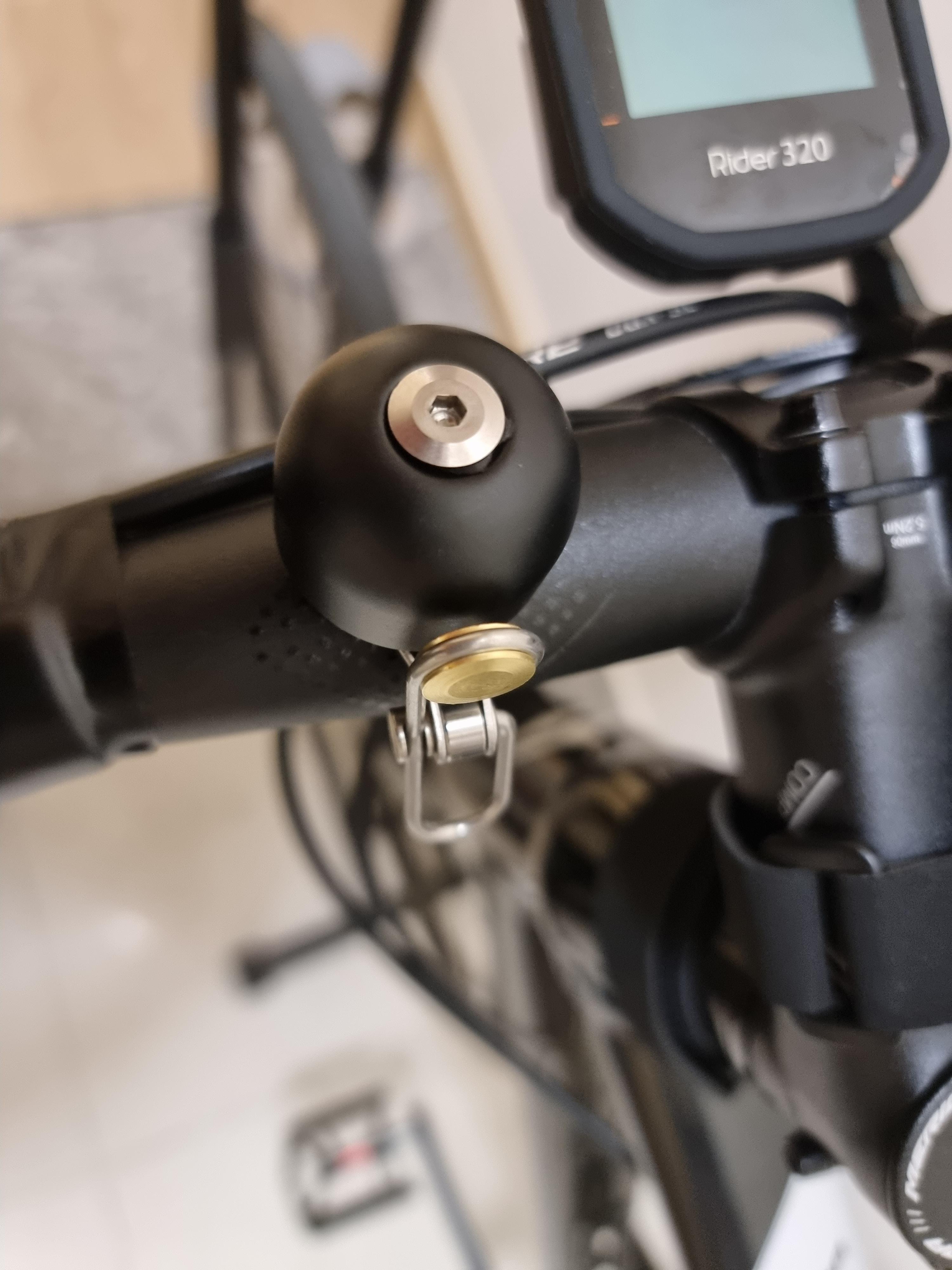 핸들바 왼쪽에 설치해보았다. 필요하다면 나중에 위치를 조정해야할 듯. 아래쪽에 자전거 케이블이 있기 때문에 케이블에 닿이면 소리가 안나므로 조금 위쪽으로 바라보게해서 설치해보았다.