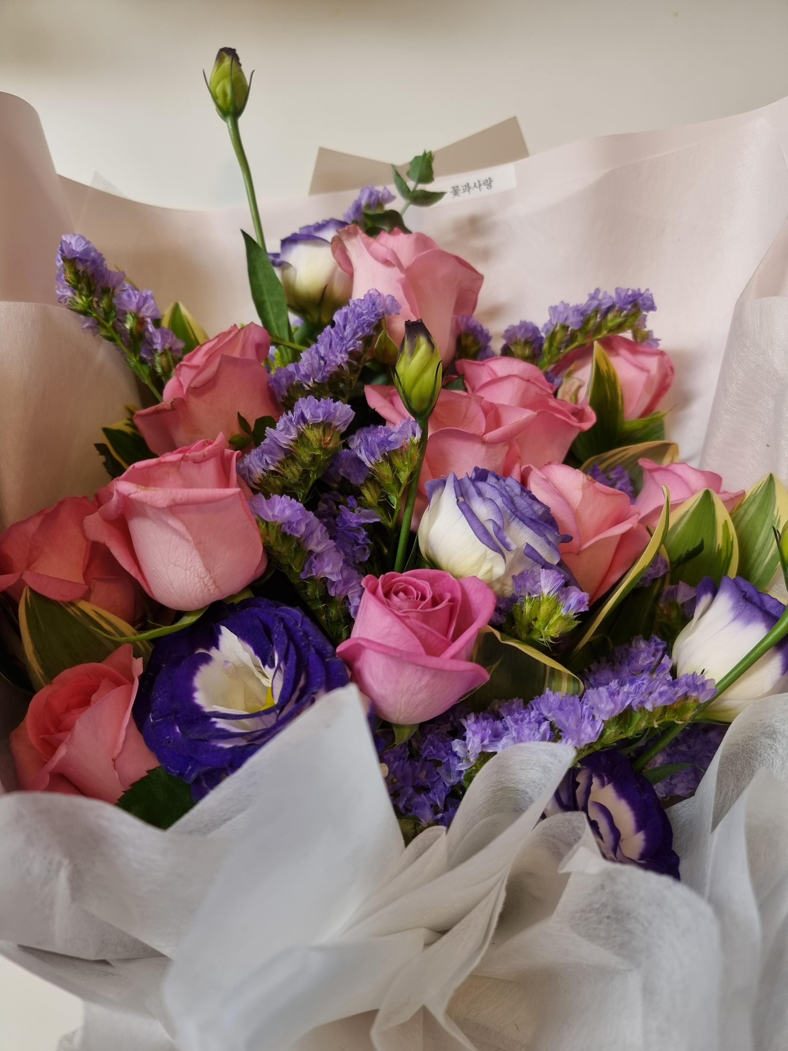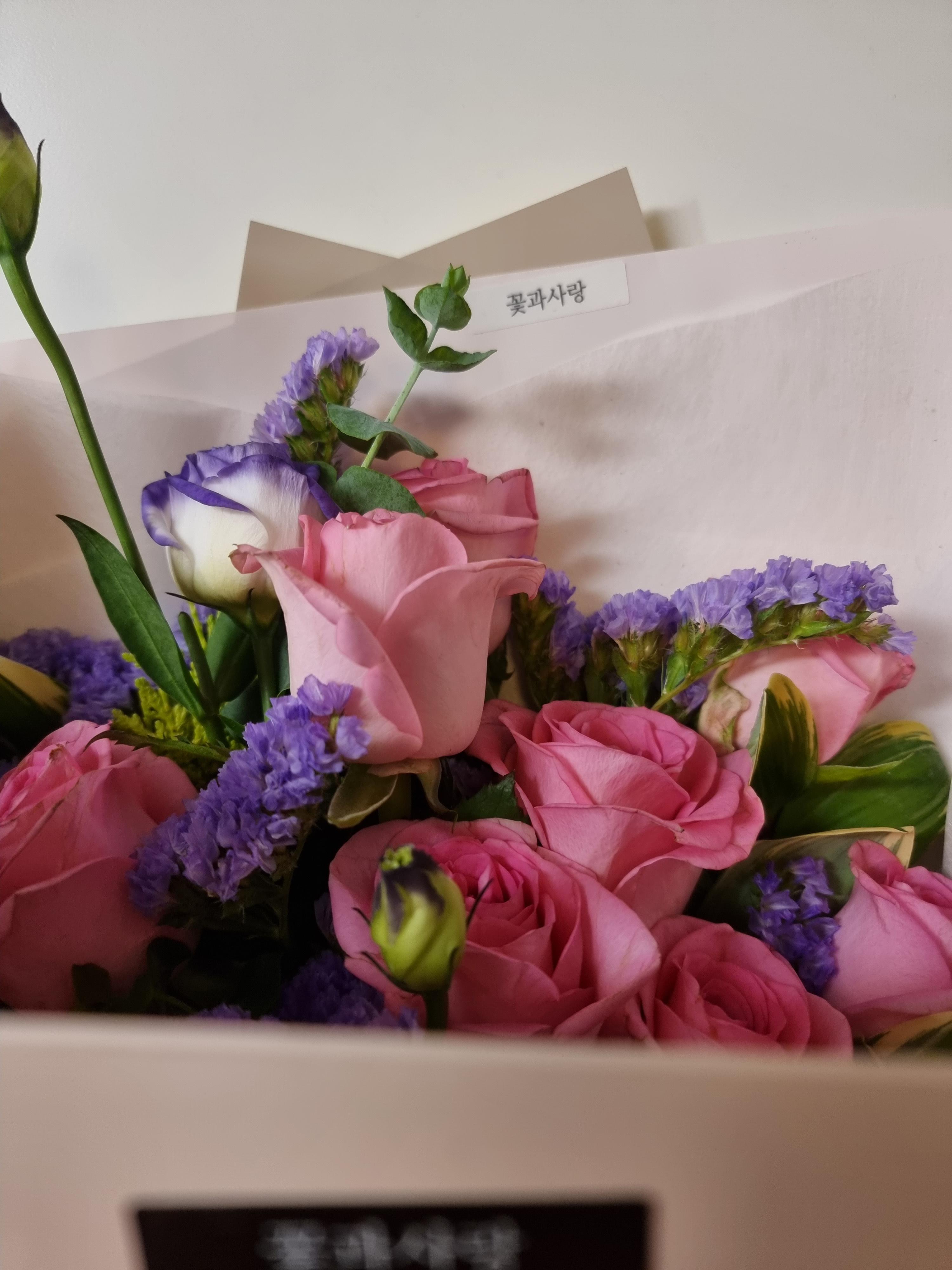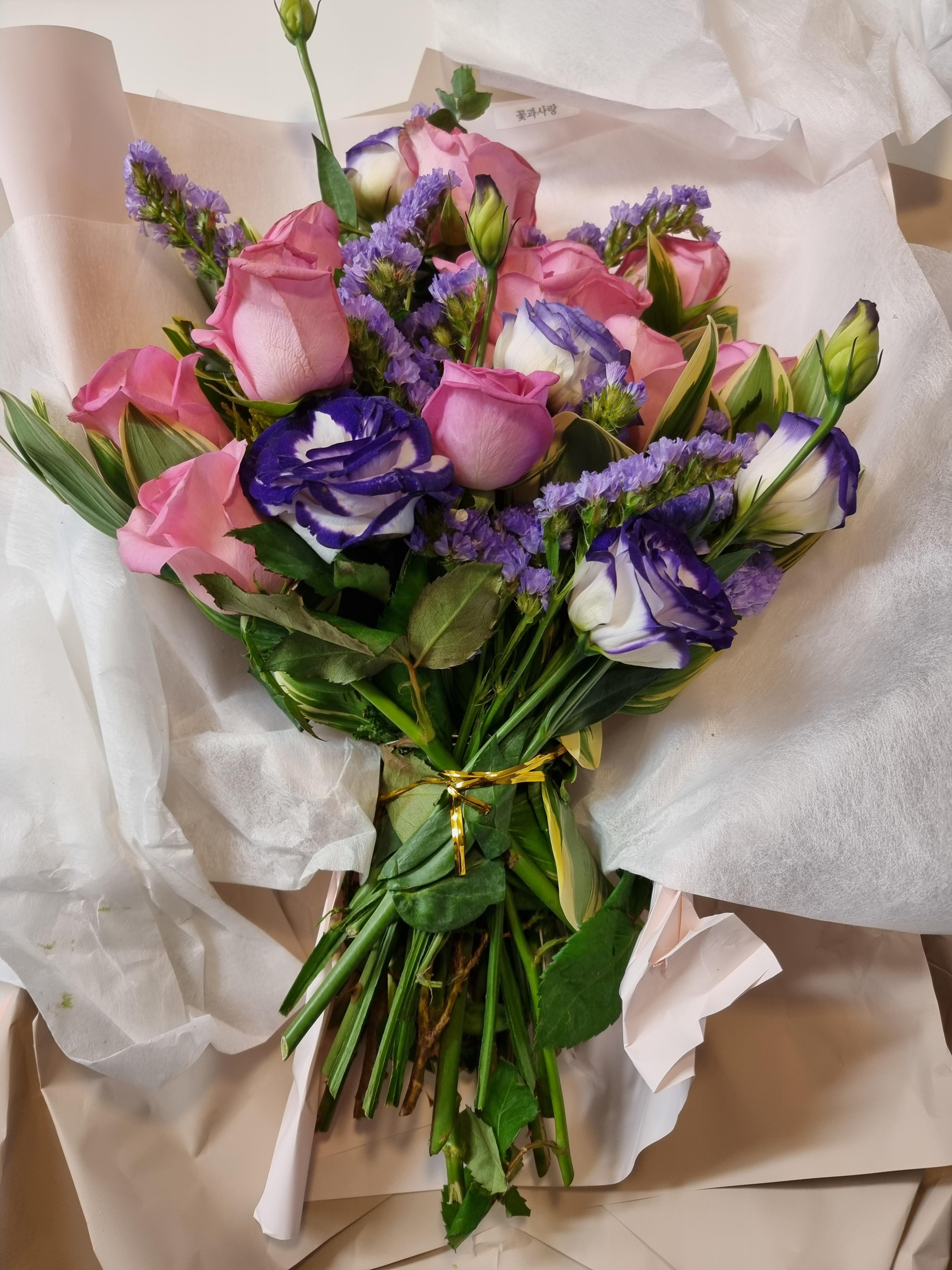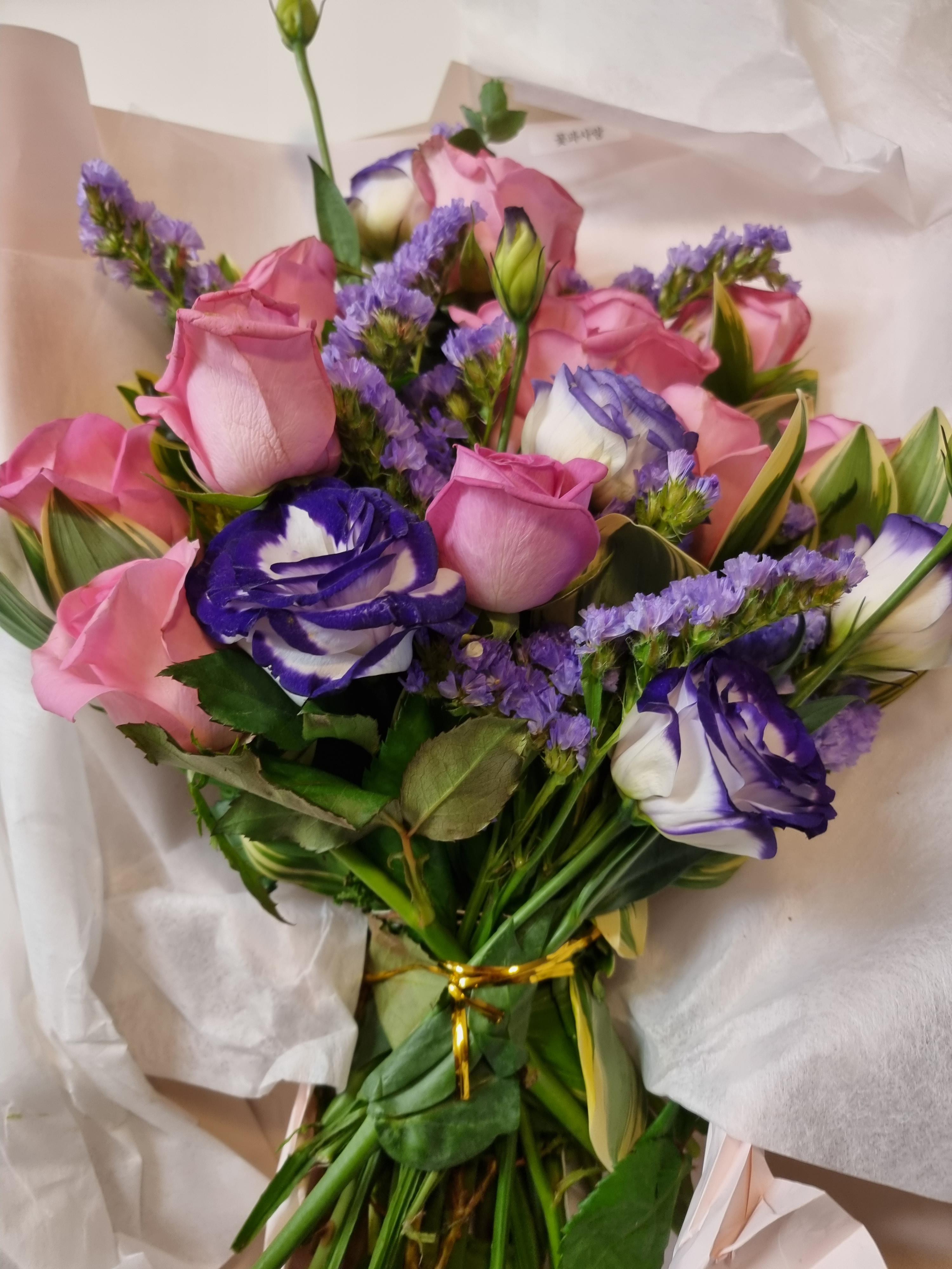 보통 꽃다발을 선물로 줘본적은 몇 번 있는데 받은적이 없어서 처음 받을 때 살짝 당황하기도 하고 기분이 묘했다. 향이 너무 좋았고, 기분도 너무 좋아졌다. 여성분들이 왜 꽃 선물을 좋아하는지 이제야 알 것 같다.