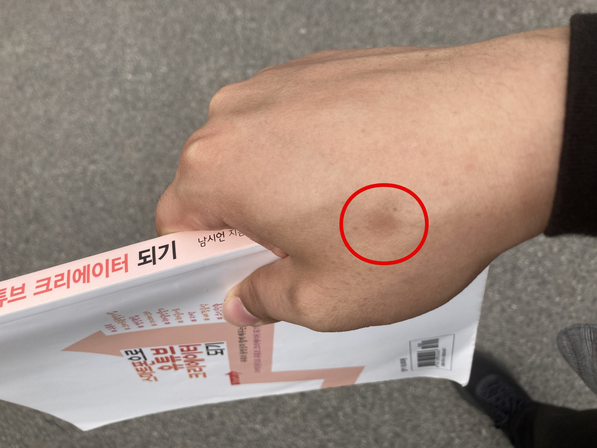 일단 첫번째 문제는 반장갑을 손에 착용할 때 찍찍이로 착용하게 되는데, 이 찍찍이를 꽉 조이는게 아닌 이상에는 아주 작은 틈이 생길 수 밖에 없고, 이 틈 부분만 살이 탄다는 점이었다. 저 동그란 부분이 찍찍이 틈있는 부분인데, 이렇게만 타니까 손에 상처 입은 듯한 느낌이 나서 보기에 영 별로였다.