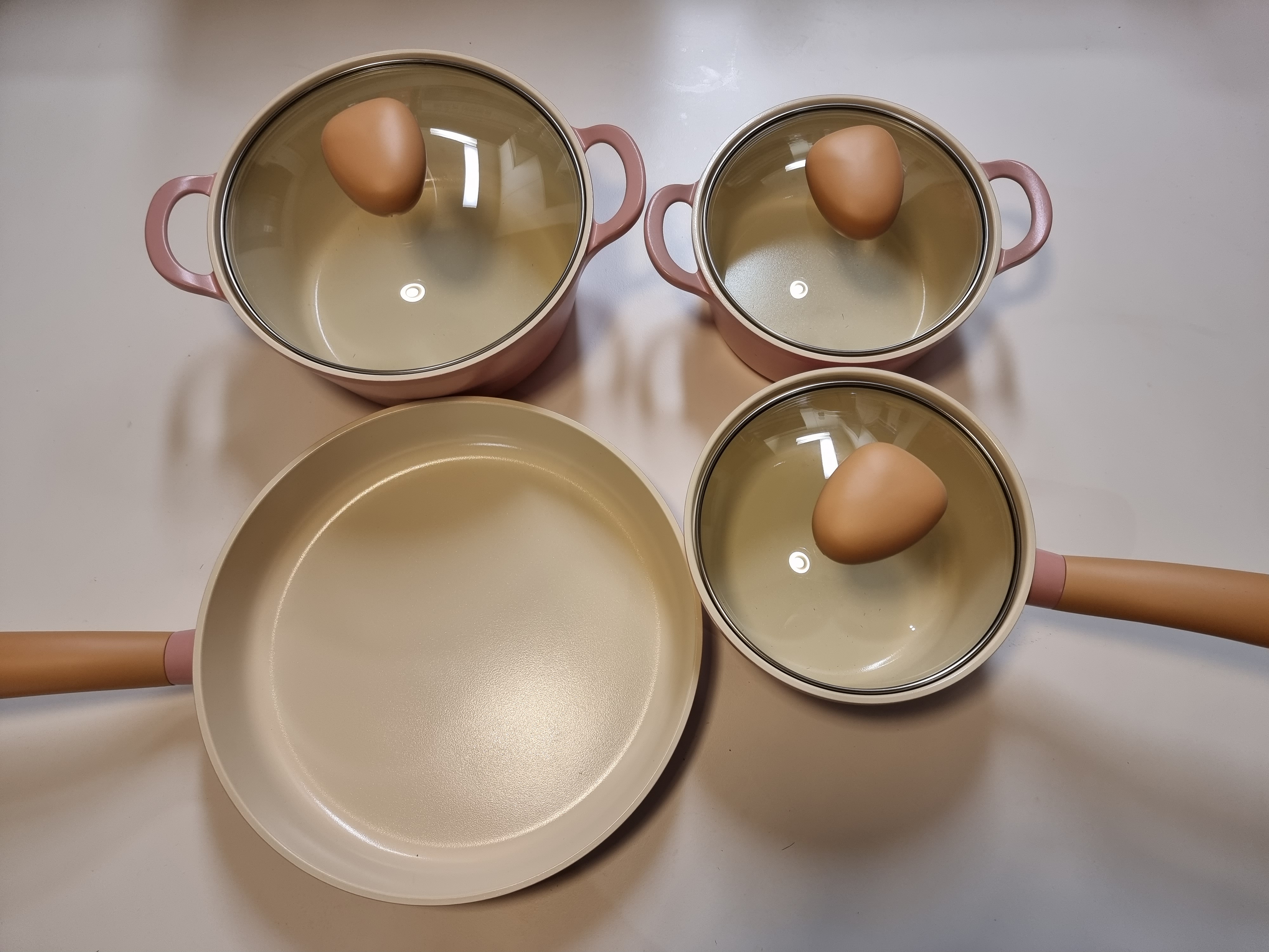 크기가 다른 양수냄비 2개와 편수 냄비 하나, 그리고 후라이팬 하나를 구매했다. 5개가 들어있는 세트로 사면 좀 더 저렴하게 살 수 있는데 아무래도 세트에는 내가 원하는 구성을 맞출 수가 없다보니 그냥 개별 제품으로 구매했다.