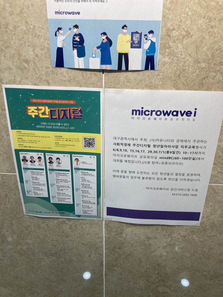 대구스테이션센터 내에 있는 6층과 7층은 마이크로웨이브 공유오피스인데 확실히 새로 만든 곳이라서 그런지 깔끔하기도 하고 시설도 무척 좋았어요.