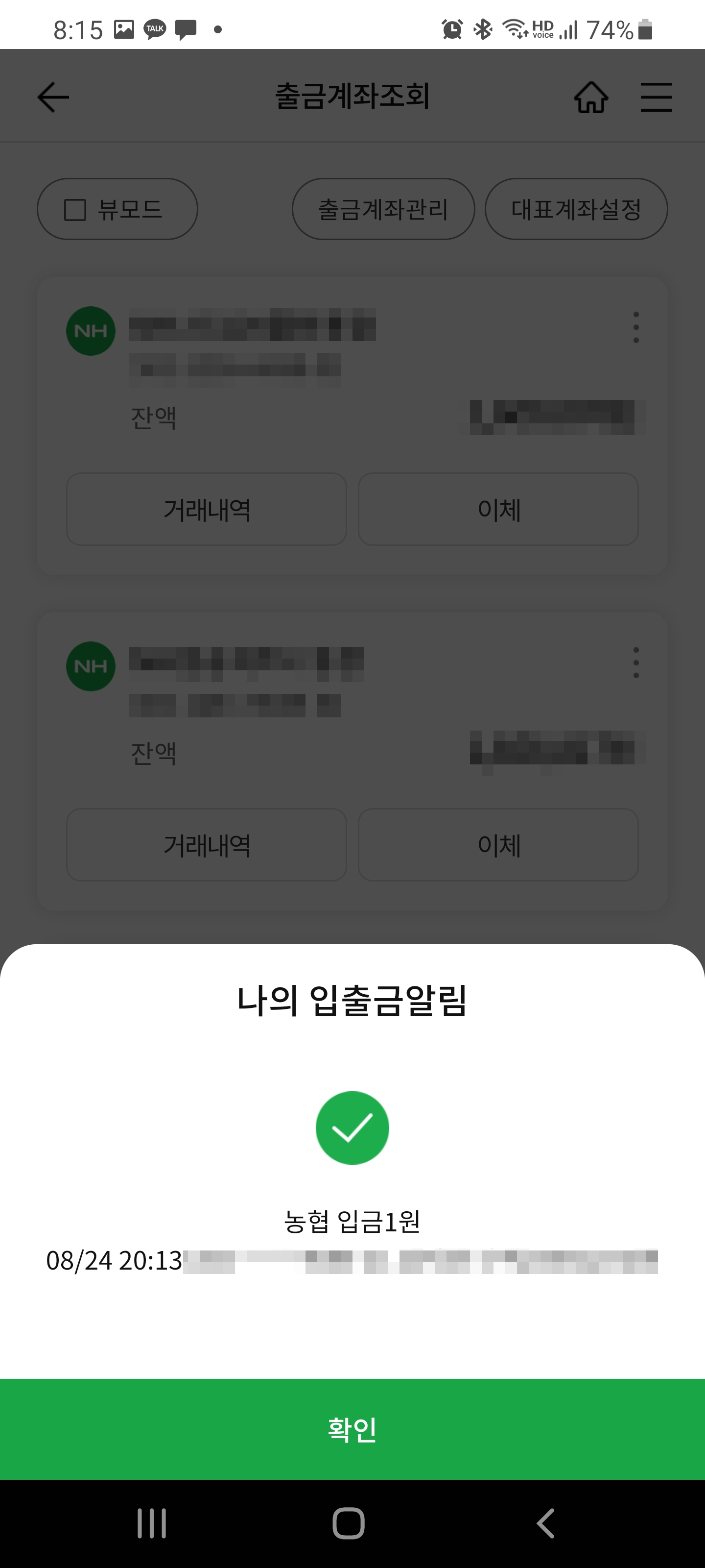 만약 계속 문제가 생긴다면, 오픈뱅킹을 쓸 수 있으므로 농협의 계좌를 다른 은행의 오픈뱅킹에 등록해두고 다른 은행의 앱으로 푸시를 받아야하는 것도 고려 중에 있습니다. 장기적으로는 이런 방향이 좀 더 나을 것 같습니다...