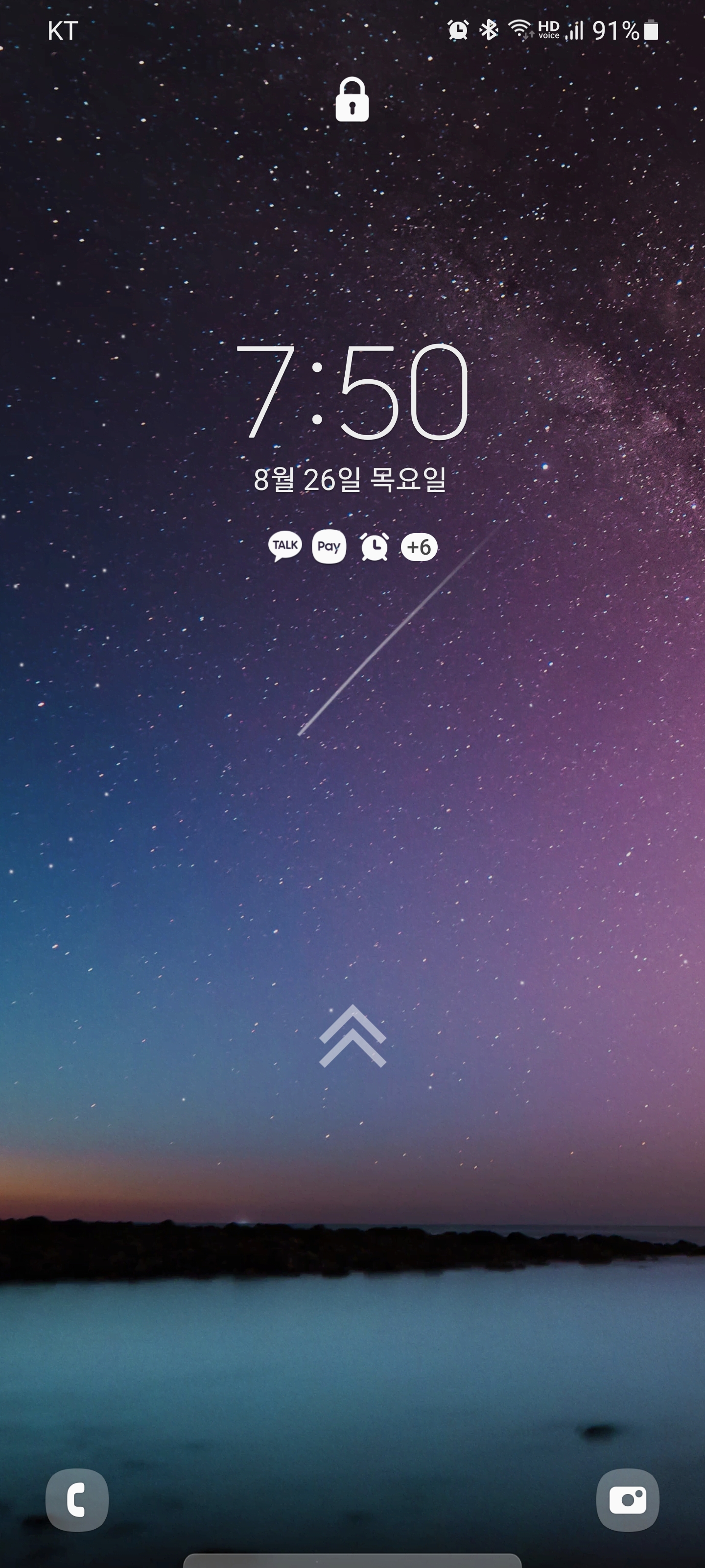 이제 잠금화면에서 알림을 확인하기 위해 가운데에 있는 화살표 같은 버튼을 위로 슬라이드해서 올리면 알림이 보입니다. 알림 디자인이 썩 좋은건 아니지만, 알림을 볼 수 있는건 좋네요.