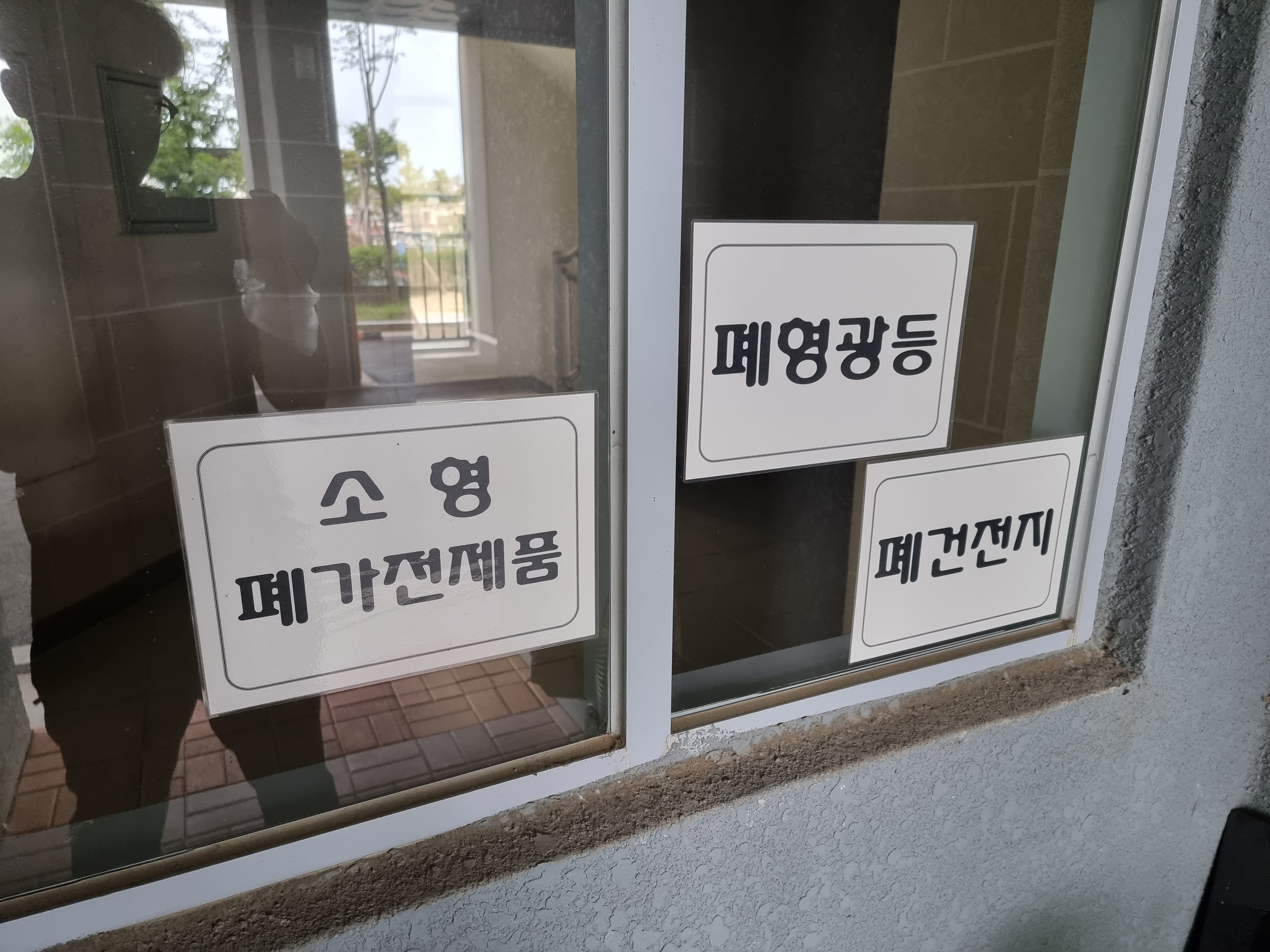 그 다음에 아파트의 경우 소형 폐가전제품을 버리는 곳이 따로 있는데, 여기에 버리면 된다고해서 여기에 버렸습니다. 여기에 건전지랑 막 이런거 버리는 곳인데 여기가 적절해보이더라고요.