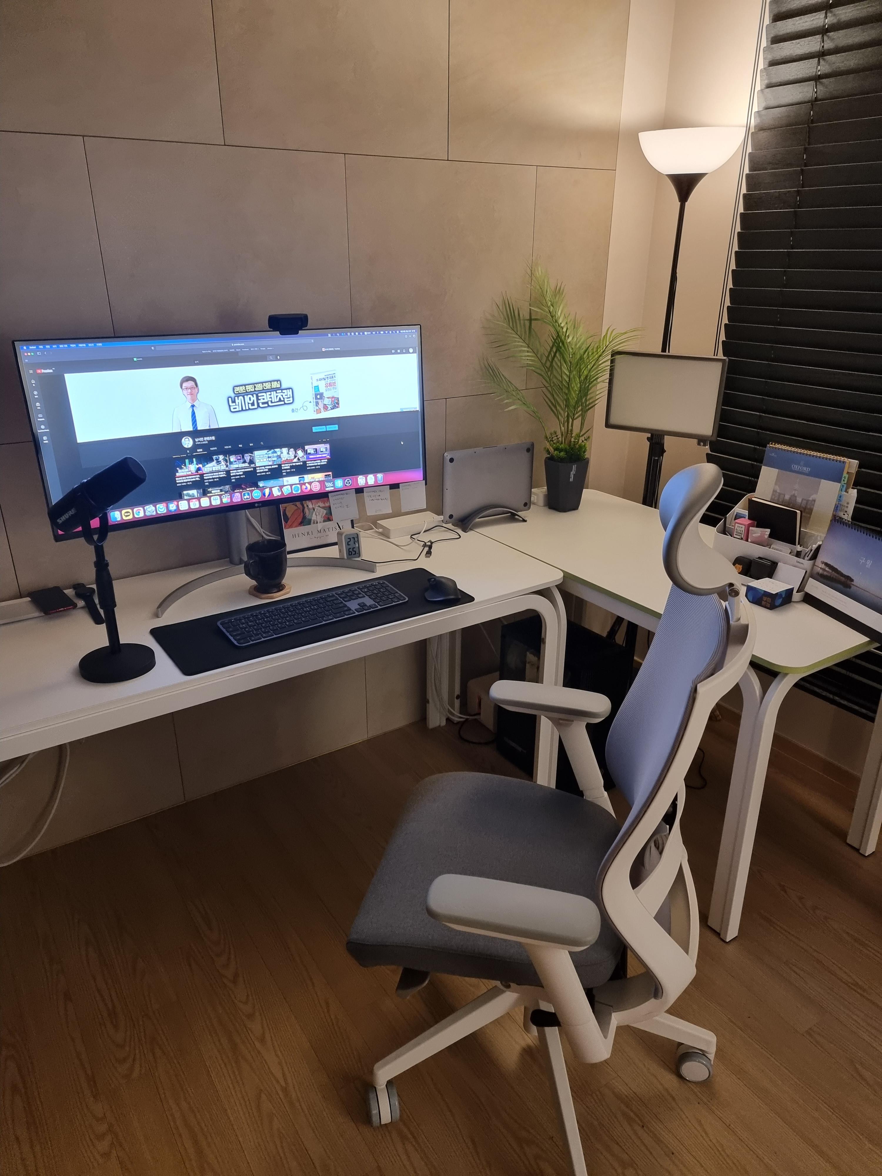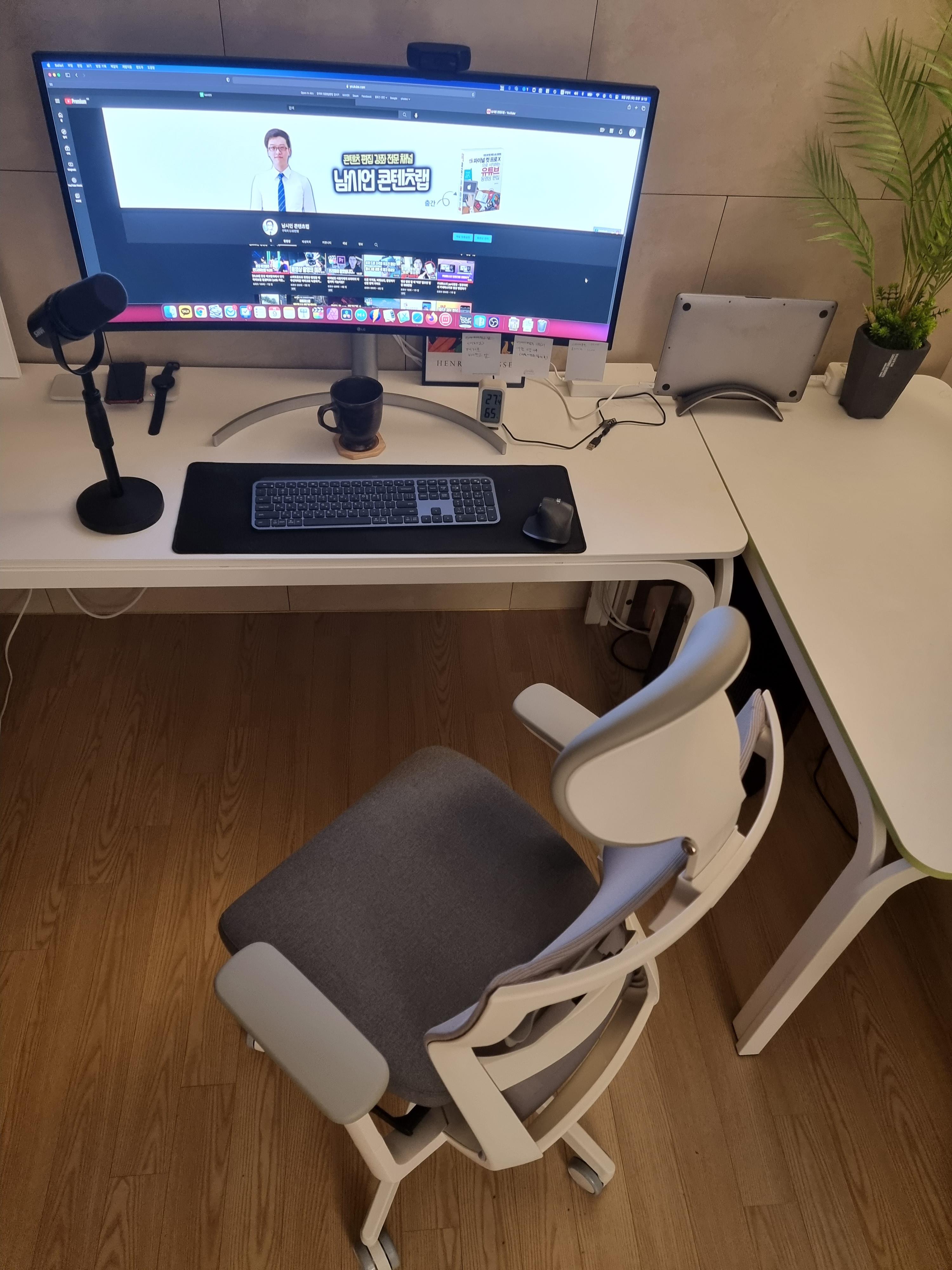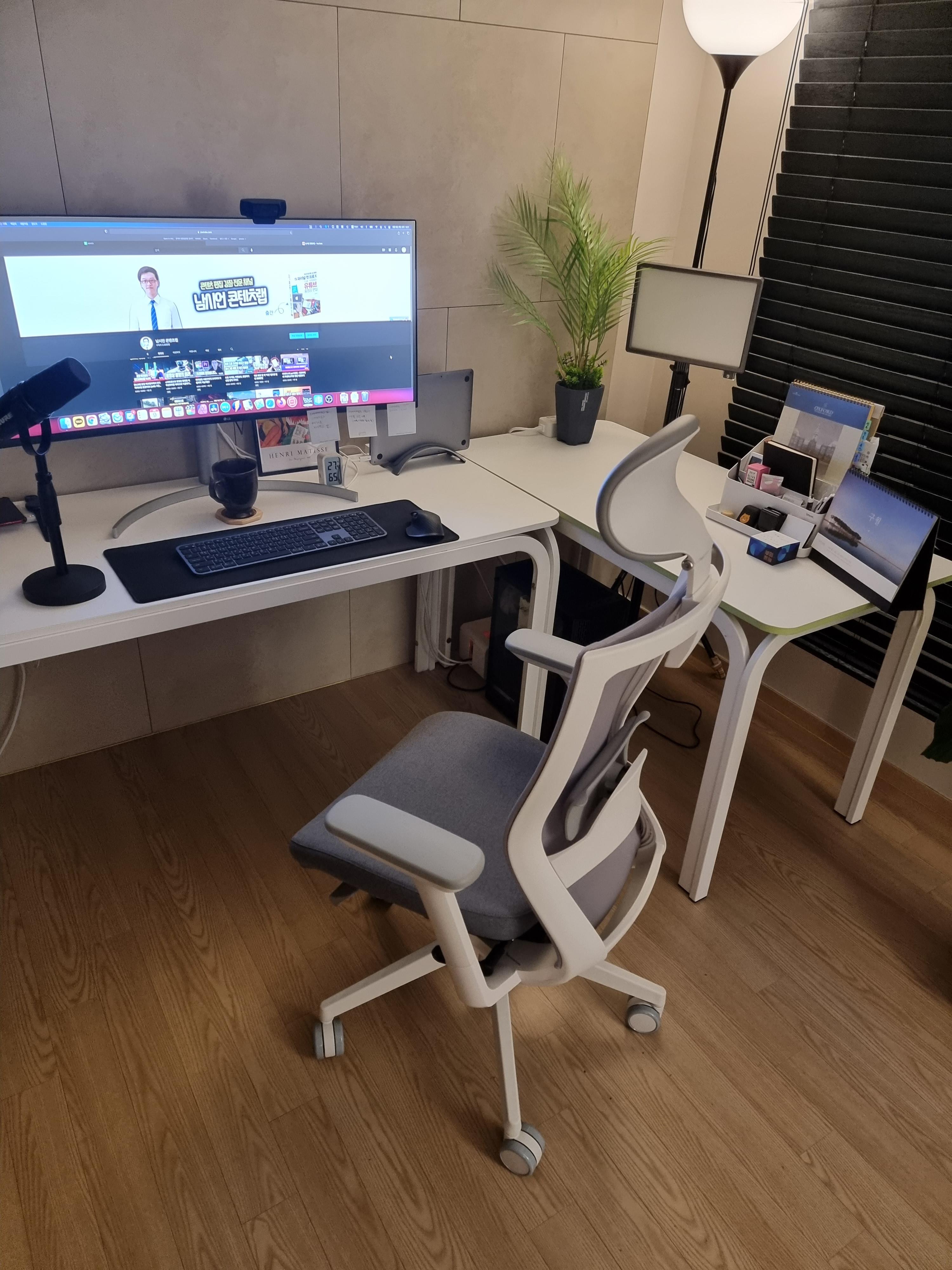 일단 디자인이 예쁘고 제가 작업하는 작업 공간에도 잘 어울릴 것 같아서 확 끌렸습니다. 책상이 흰색이다보니까 검은색이나 빨간색 위주의 의자보다는 흰색이나 그레이색상 조합의 화이트쉘 의자가 참 예뻐보이더라고요. 무엇보다 잘 어울리기도 하고요.
