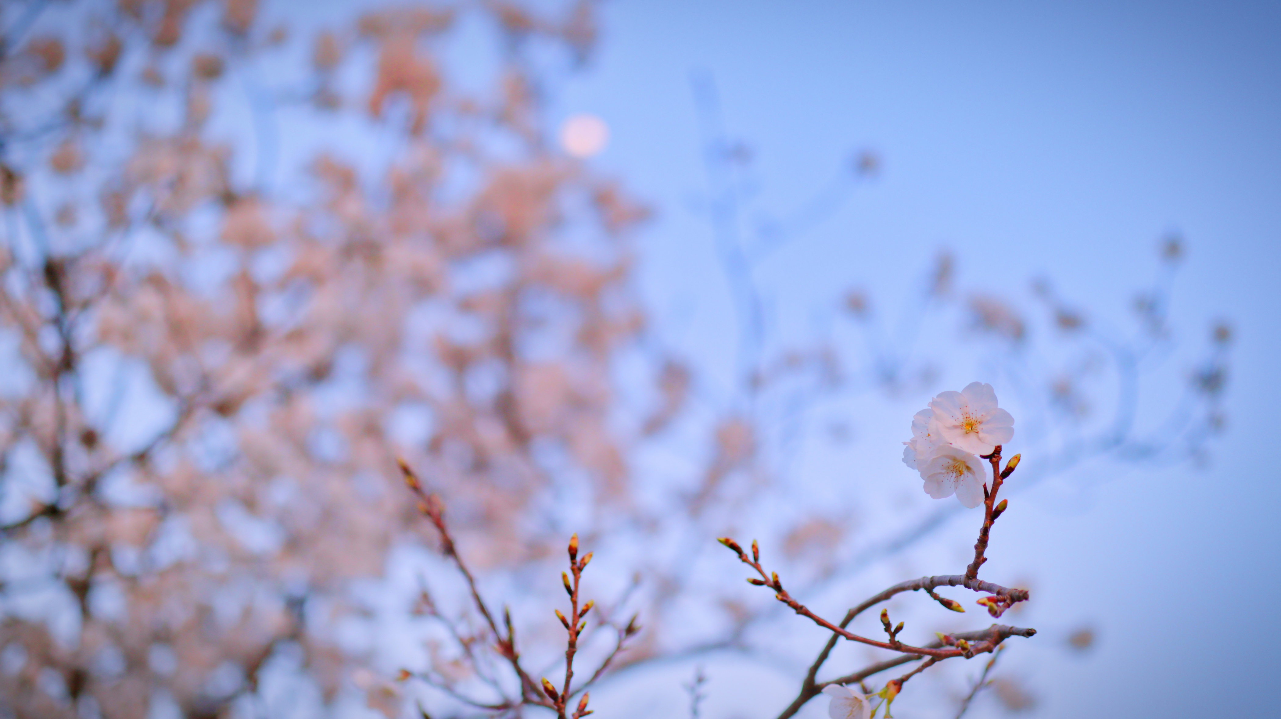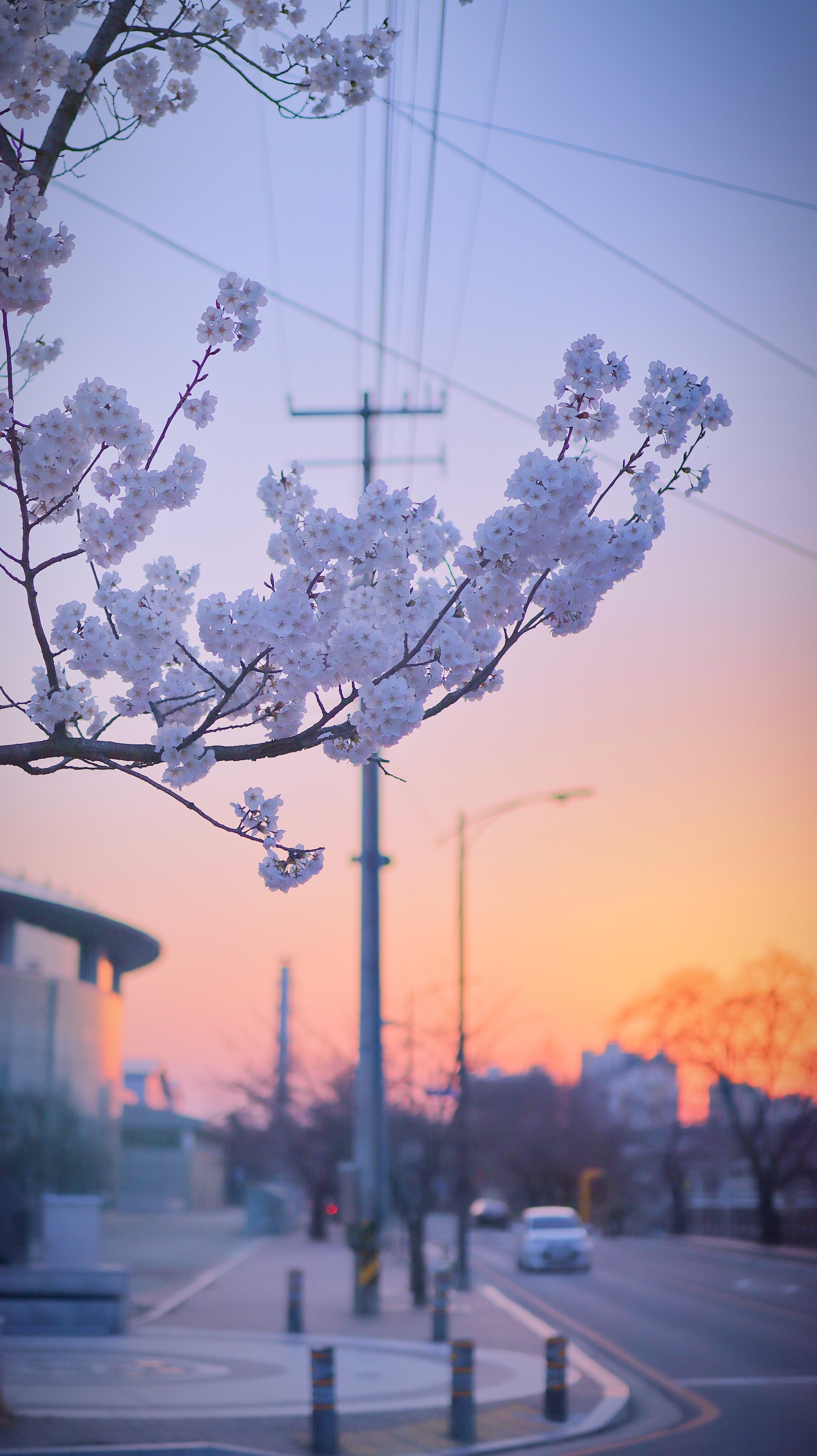 벚꽃이 필 때 쯤 노을과 꽃을 함께 담았습니다.