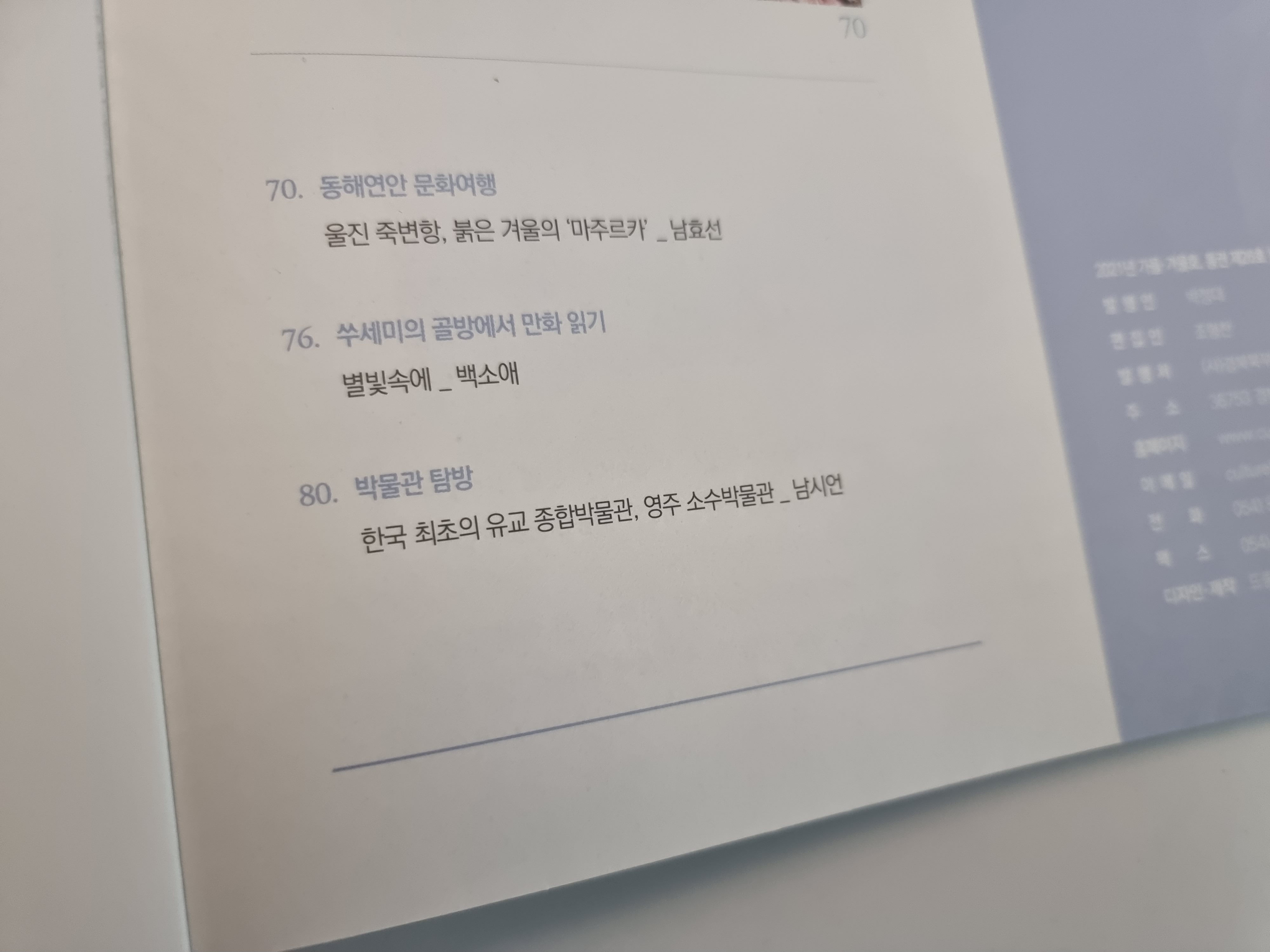 2021년 컬처라인 하반기호에는 영주에 있는 한국 최초의 유교 종합박물관인 영주 소수박물관을 다루었다.