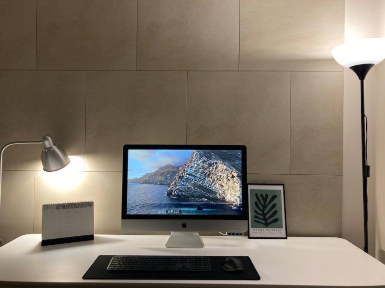 - 제품 : 아이맥 5K, 이케아 린몬 아딜스 책상, 애플 트랙패드, 애플 매직키보드