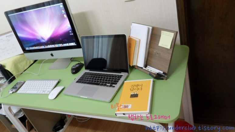 맥북만 쓰다보니 작업이 너무 힘들어서 어떻게 하다보니 아이맥 24인치 기본형을 구매하게 되었고, 책상도 필요해서 책상도 인터넷으로 구매하게 되었다. 이때 산 책상은 다윈 책상이었다. 이때가 2011년이었는데, 이때부터 본격적으로 블로그를 업무용으로 활용하게 되었다. 당시에는 돈벌이가 너무나도 막막했었지만, 딱 원하는 일을 할 수 있는 직장이 지역에 없었던터라 일단은 블로그나 페이스북같은 SNS를 활용해 마케팅을 하고 소액의 광고비를 얻어가는 방법으로 밥벌이를 하게 되었다.