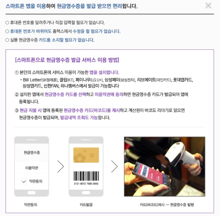 국세청 홈택스 현금영수증 소비자 발급수단 등록하는 방법