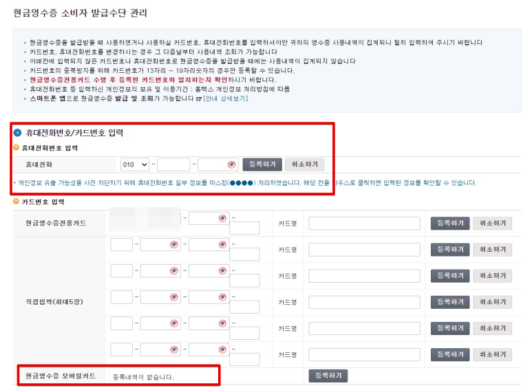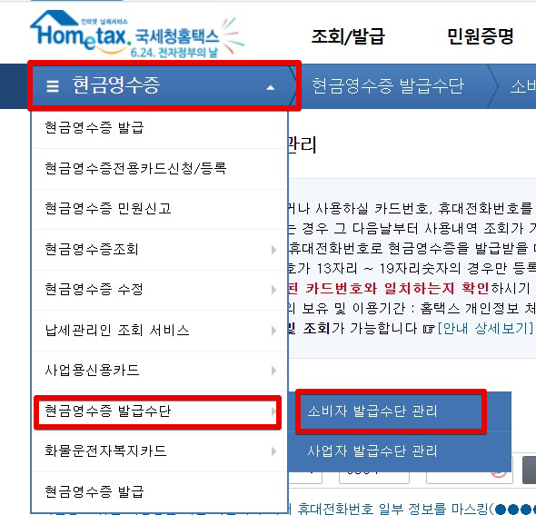 국세청 홈택스 현금영수증 소비자 발급수단 등록하는 방법
